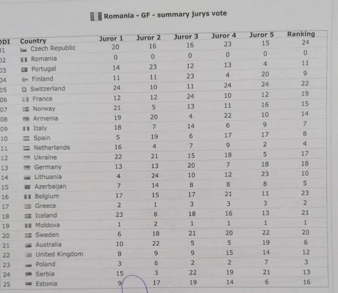 Μετά από το σκάνδαλο που ξέσπασε, η δημόσια τηλεόραση της Ρουμανίας, αντίθετα με τις οδηγίες της EBU, ανακοίνωσε τα αναλυτικά αποτελέσματα της κριτικής της επιτροπής για τον τελικό, έτσι όπως δηλαδή θα ψήφιζαν οι κριτές…