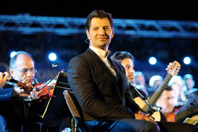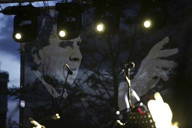 Pop star Sakis Rouvas sings `Axion Esti` of Mikis Theodorakis, at Nea Smyrni square, on May 2, 2015 / ` ` , , 2 , 2015