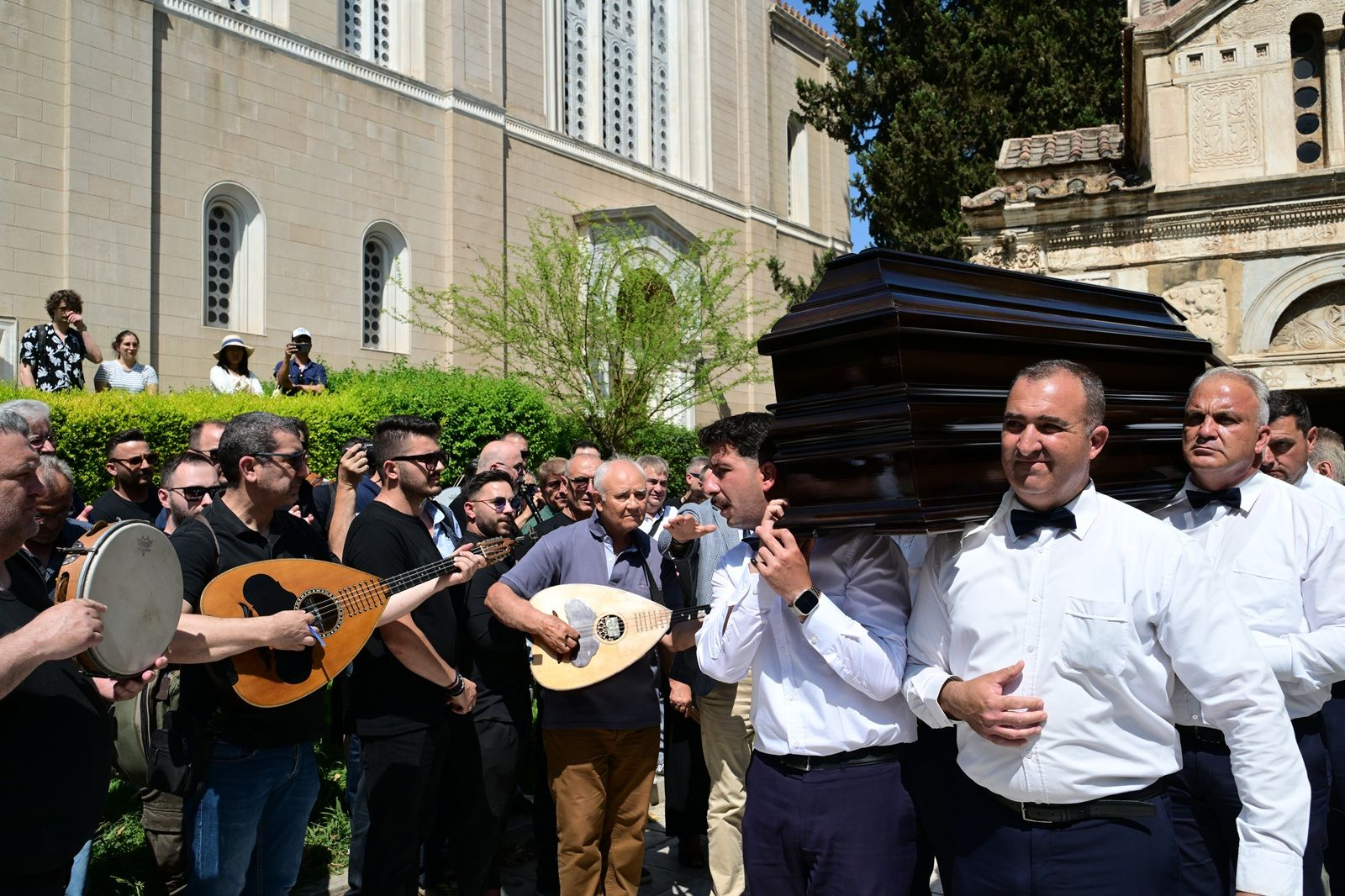 Συγκεκριμένα, όπως μπορείτε να δείτε και στο παρακάτω βίντεο που εξασφάλισε το NEWS 24/7, την ώρα που το φέρετρο με τη σορό του θρυλικού καλλιτέχνη εξέρχεται της εκκλησίας, το συγκεντρωμένο πλήθος τραγουδά το παραδοσιακό ηπειρώτικο τραγούδι “Ξεχωρίσματα” ενώ τους συνοδεύουν κλαρίνα, ντέφια και βιολιά.