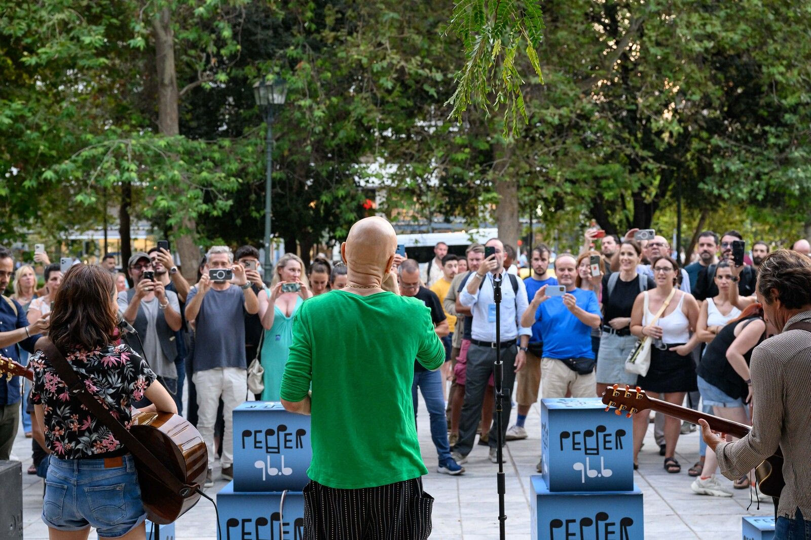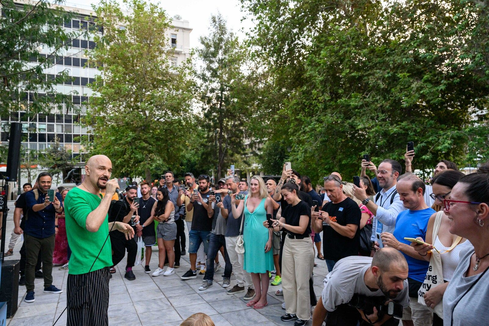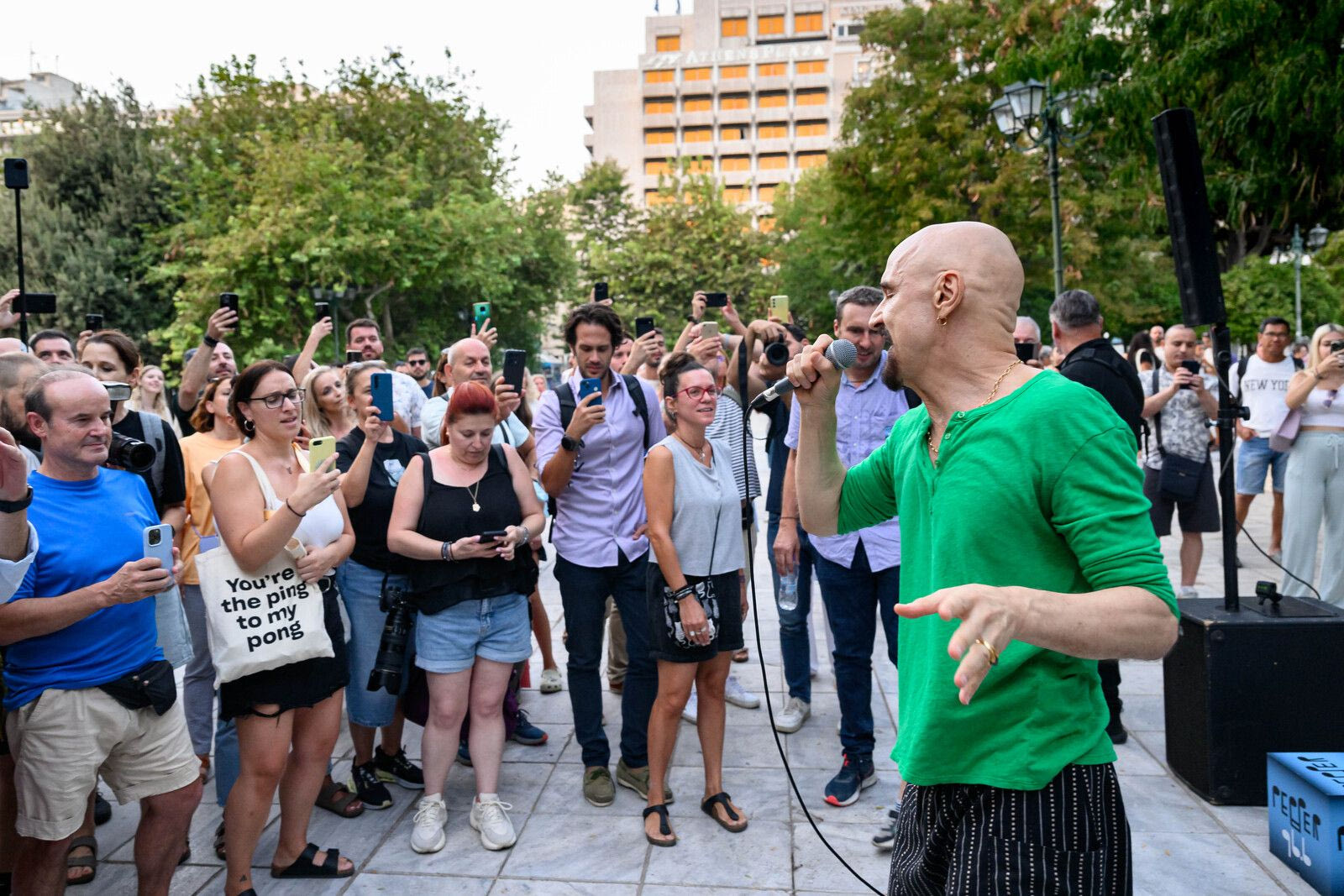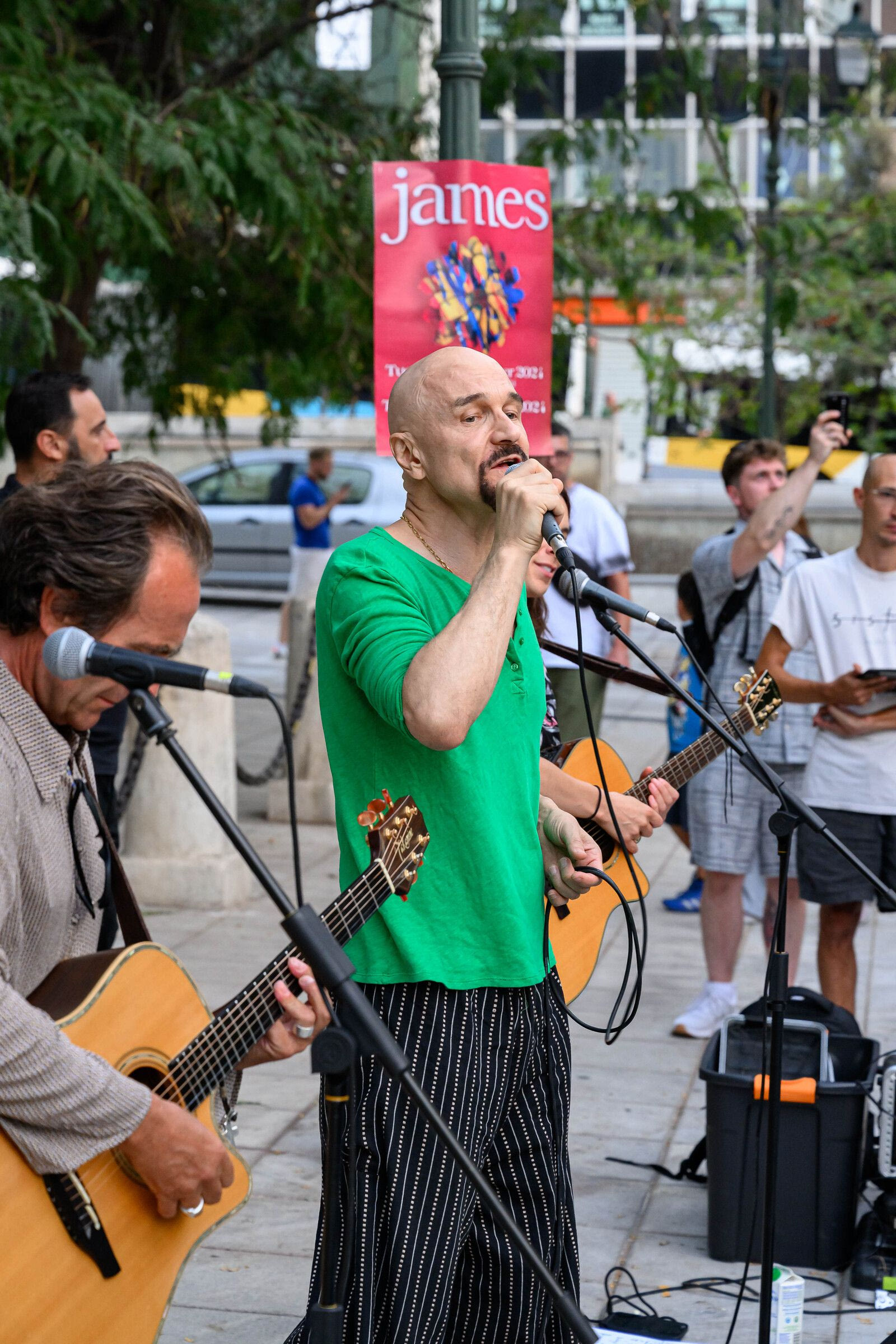 Μουσικοί του… δρόμου έγιναν για λίγο οι James με τον Tim Booth να ξεσηκώνει τους περαστικούς στο Σύνταγμα, σε μία συναυλία έκπληξη.