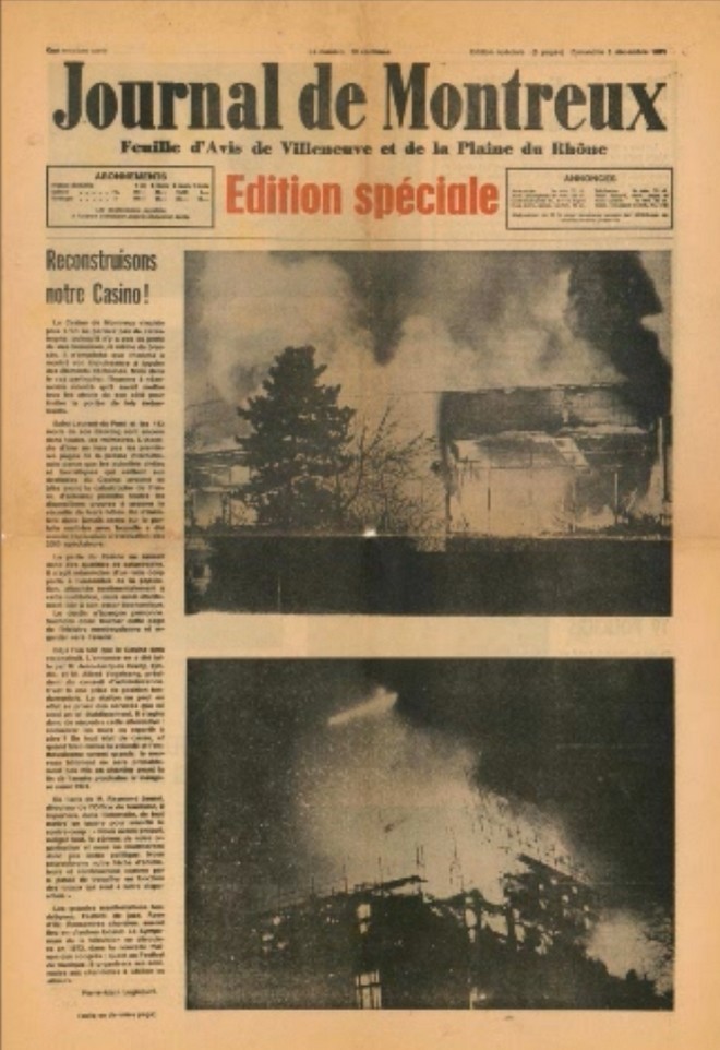 Ήταν 4 Δεκεμβρίου του 1971. Το θρυλικό συγκρότημα Deep Purple βρισκόταν στη μικρή πόλη Montreux της Ελβετίας για να ηχογραφήσει νέο άλμπουμ σε ένα ενοικιαζόμενο στούντιο.