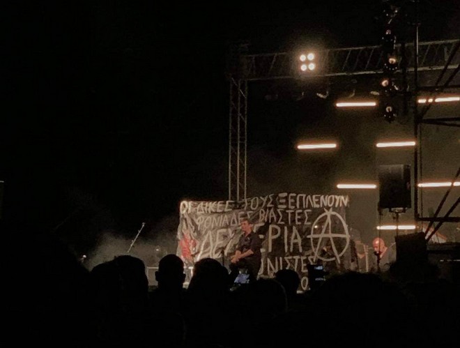 Η ομάδα αλληλέγγυων του Ηρακλείου εξέδωσε ανακοίνωση το βράδυ της Τετάρτης (27/07), περιγράφοντας την παρέμβασή της στη συναυλία του Σωκράτη Μάλαμα ως εξής: