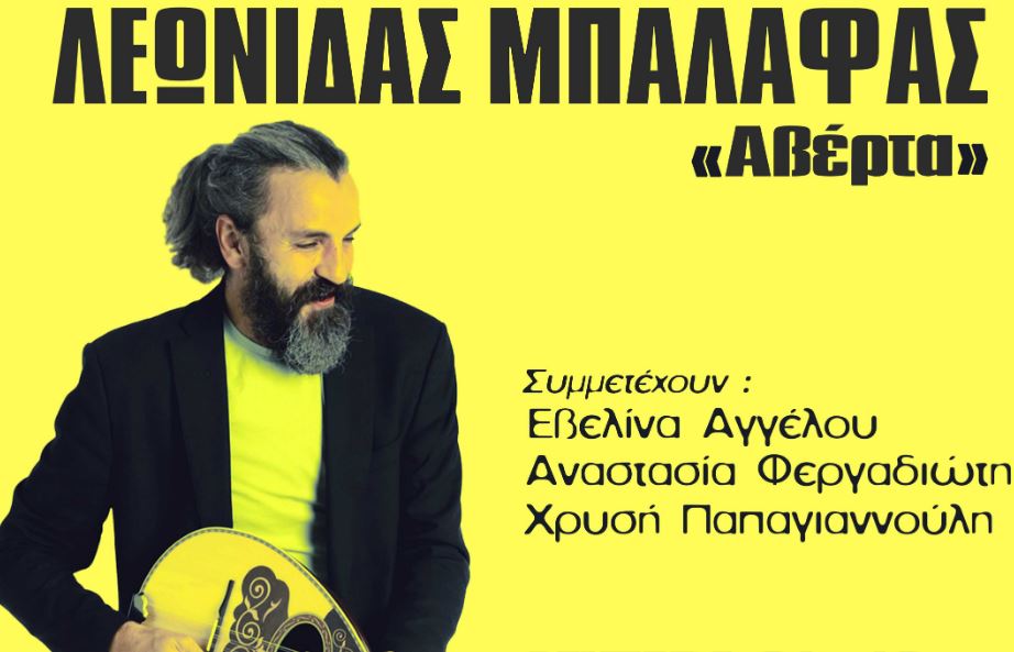 Ο Λεωνίδας Μπαλάφας παρουσιάζει το νέο του δίσκο με τίτλο “Αβέρτα” στο Σταυρό του Νότου στην κεντρική σκηνή τη Δευτέρα 31 Οκτωβρίου. Τα τραγούδια του δίσκου ηχογραφήθηκαν ζωντανά στο στούντιο της Αntart Production (στον ιστορικό χώρο της Φίνος Φιλμ) με λαϊκά όργανα, σε λαϊκούς δρόμους για να μας θυμίσει ότι το Ελληνικό λαϊκό τραγούδι δε σβήνει ποτέ. Γεννιέται σε κάθε εποχή.