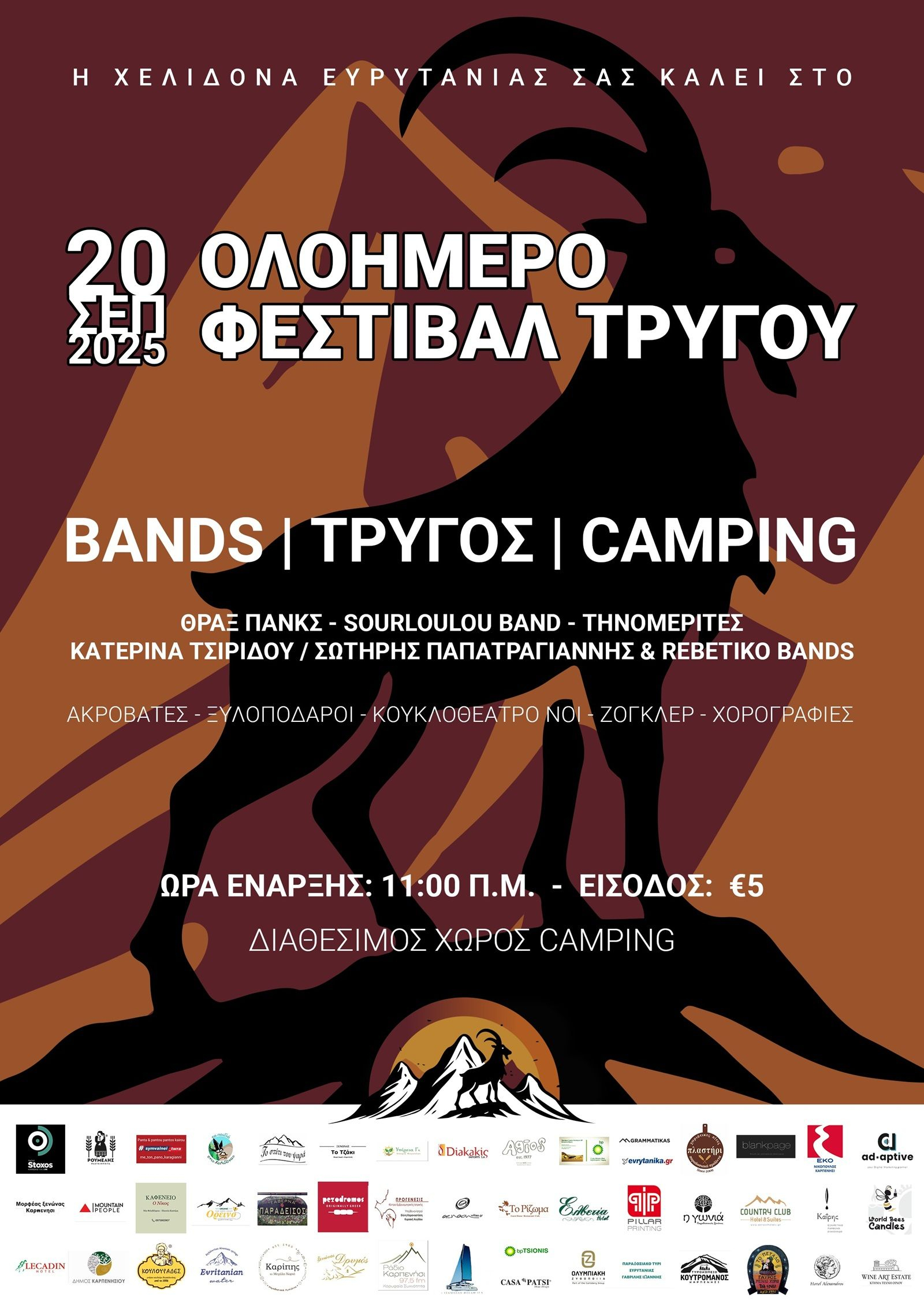 Μουσική, χορός, τρύγος και κάμπινγκ συνθέτουν το σκηνικό του Ολοήμερου Φεστιβάλ Τρύγου που θα πραγματοποιηθεί το Σάββατο 20 Σεπτεμβρίου στη Χελιδόνα Ευρυτανίας.