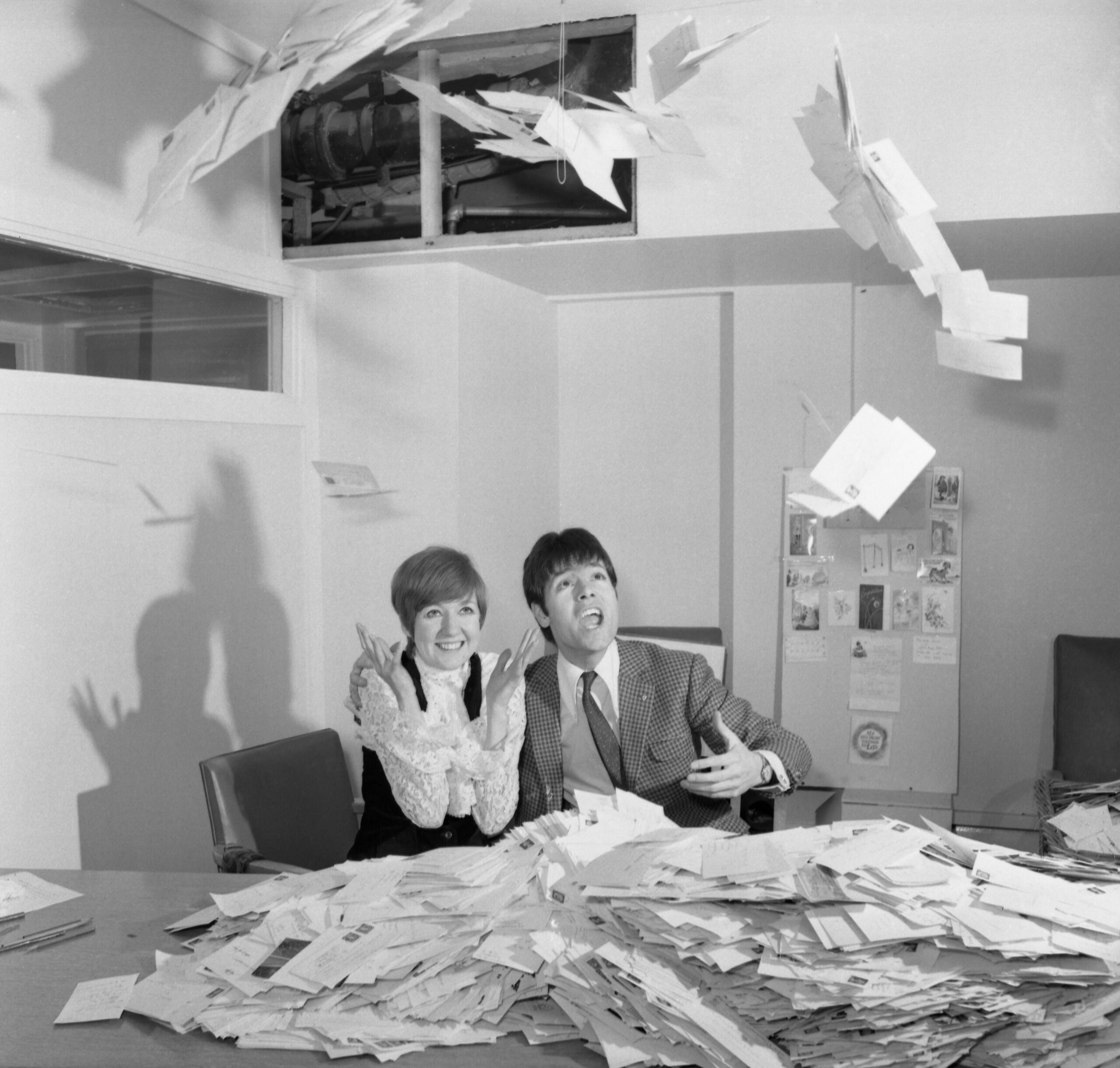 Η Cilla Black και ο Cliff Richard πετούν στον αέρα τις χιλιάδες ψήφους που στέλνουν οι Βρετανοί μέσω ταχυδρομείου για να ψηφίσουν το αγαπημένο τους τραγούδι που θα εκπροσωπούσε τη χώρα το 1968 Eddie Worth/AP Photo