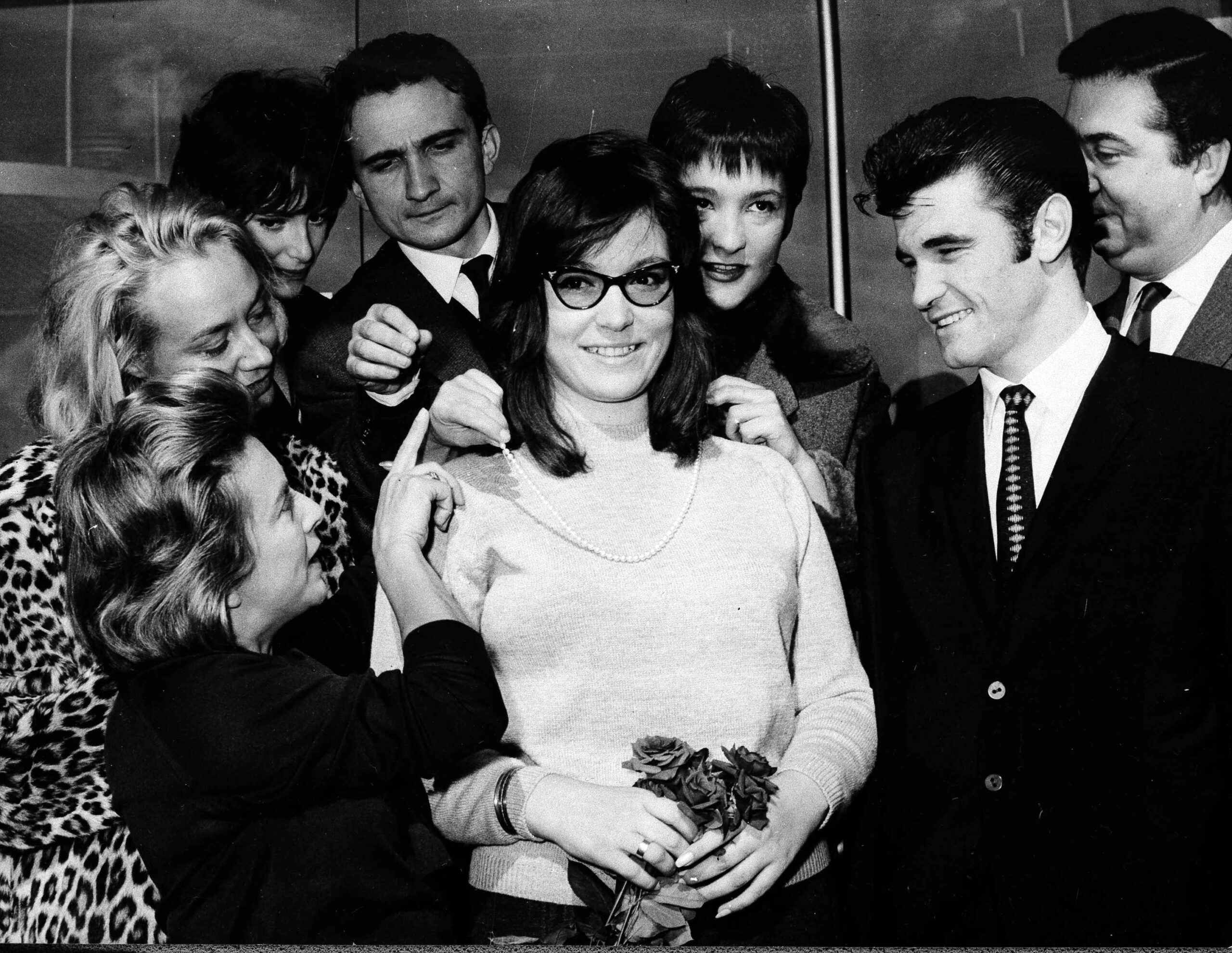 Η νεαρή Νάνα Μούσχουρη λίγο πριν βρεθεί στον μουσικό διαγωνισμό της Eurovision - Στη φωτογραφία στο αεροδρόμιο Orly το 1961. AP Photo