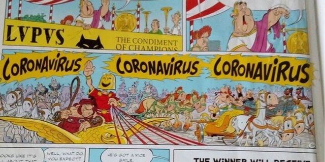Για να είμαστε πιο ακριβείς, “Kορονοϊός” (στα αγγλικά Coronavirus) ήταν το όνομα ενός μασκοφόρου αρματοδρόμου που επιστράτευσε ο Ιούλιος Καίσαρας για να κατατροπώσει τον γνωστό Γαλάτη Αστερίξ στο κόμικ που κυκλοφόρησε στη Γαλλία το 2017 με τίτλο «Ο Αστερίξ και ο Υπεριταλικός».