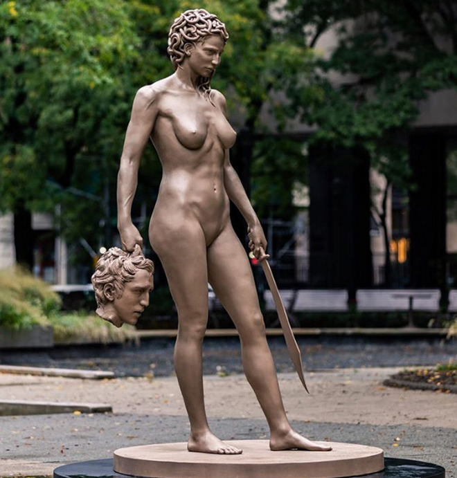 Το γλυπτό “Medusa With The Head of Perseus”, που δημιουργήθηκε από τον Αργεντινό, με Ιταλικές ρίζες, καλλιτέχνη, Luciano Garbati, απεικονίζει τη Μέδουσα να κρατάει ένα σπαθί και το κεφάλι του Περσέα, του άντρα δηλαδή που τη σκότωσε.
