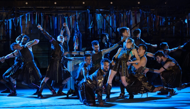 Η μοναδική γυναίκα της παράστασης η Στεφανία Γουλιώτη ως κορυφαία του χορού, έκανε έναν από τους καλύτερους μονολόγους που έχουμε δει τα τελευταία χρόνια.