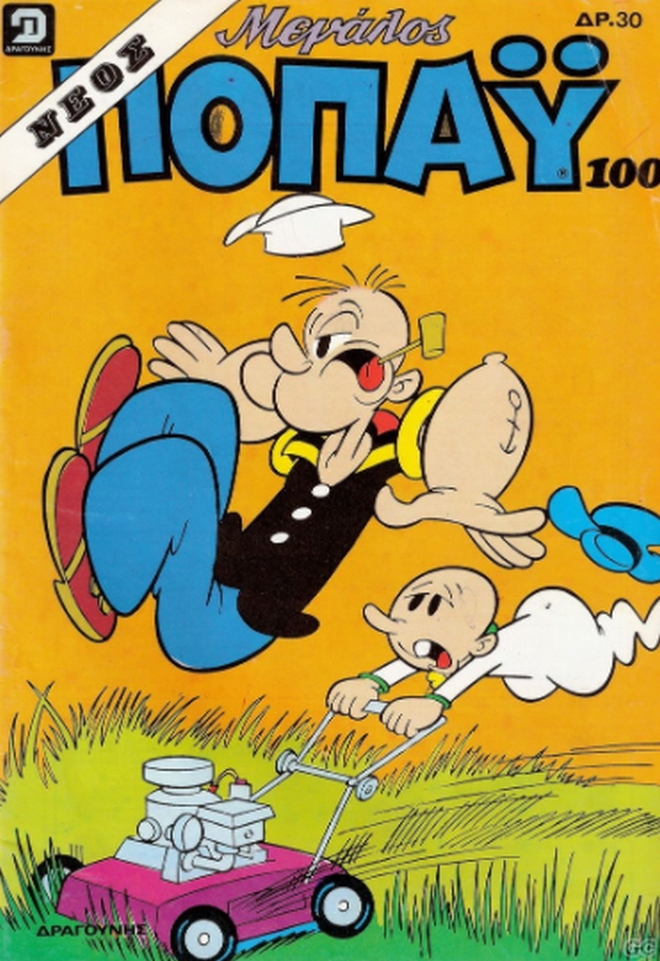 Τον Ποπάυ πρωτοέφερε στην Ελλάδα το 1956 ο εκδότης του περιοδικού κόμικς «Γέλιο και Χαρά». Γύρω στα μέσα του 1973 ο Ιωάννης Δραγούνης (Πηδάλιο Πρεςς) πήρε την άδεια και δημοσίευσε εκ νέου τις περιπέτειές του σ’ ένα περιοδικό, το οποίο λατρεύτηκε αμέσως από τα παιδιά και έγινε το αντίπαλο δέος του Μίκυ. Ήταν τόσο δημοφιλές, που μέχρι και οι πωλήσεις του σπανακιού, του λαχανικού που τροφοδοτούσε τη δύναμή του, αυξήθηκαν.