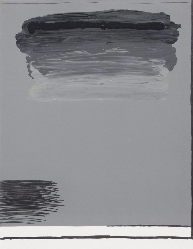 Στις συνθέσεις του Γιάννη Μωυσίδη κυριαρχούν οι αφηρημένες μαύρες έντονα χειρονομιακές κηλίδες