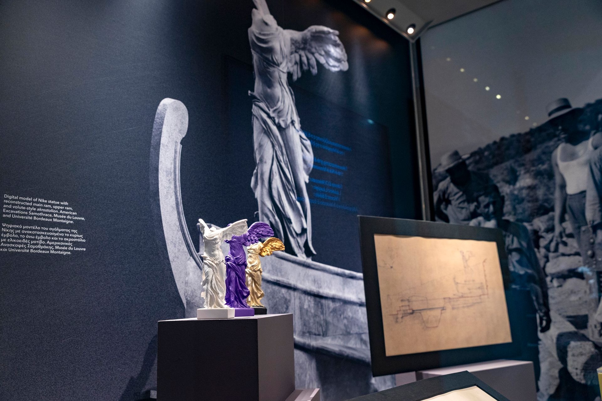 Η έκθεση περιλαμβάνει σπάνια αναγεννησιακά σχέδια των αρχαιοτήτων της Σαμοθράκης από τον αρχαιοδίφη Κυριάκο Αγκωνίτη, τα οποία εκτίθενται για πρώτη φορά στην Ελλάδα.