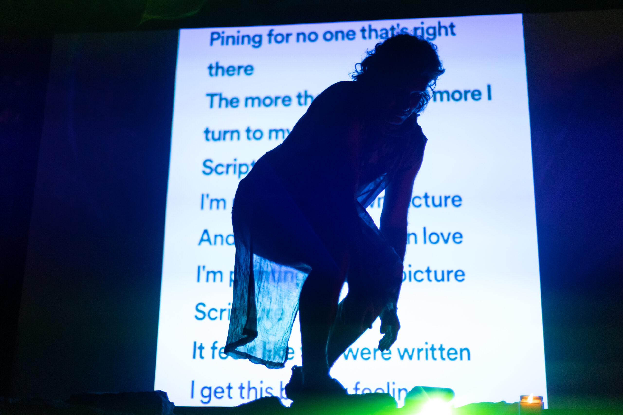 Μινιμαλιστική, αλλά εντυπωσιακή η site specific προσαρμοσμένη εκδοχή του έργου του Ιώκο Ιωάννη Κοτίδη μέσα στο εντυπωσιακό μισογκρεμισμένο αρχοντικό. Το «Έργο για Έναν Άνθρωπο Μονάχα – Μέρος Πρώτο». είναι εμπνευσμένο από το ποίημα της πρώτης Ελληνίδας υπερρεαλίστριας, Μάτσης Χατζηλαζάρου, της «πολυτιμότερης ερωτικής ποιήτριας που διαθέτει η γλώσσα μας» κατά τον Γ. Π. Σαββίδη.