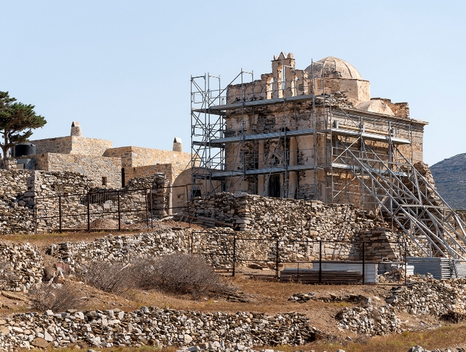 “Το Υπουργείο Πολιτισμού και Αθλητισμού δια μέσου της Εφορείας Αρχαιοτήτων Κυκλάδων υλοποιεί το έργο της αποκατάστασης του ιδιαίτερου και πολύ σημαντικού μνημείου της Επισκοπής Σικίνου από το 2017, με πιστώσεις του επιχειρησιακού προγράμματος ΕΣΠΑ της Περιφέρειας Νοτίου Αιγαίου, προϋπολογισμού 750.000 ευρώ.