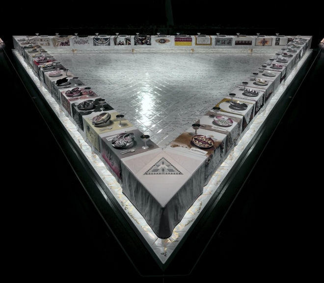 Το Δείπνο της Judy Chicago αποτελεί ένα από τα πρώτα έργα φεμινιστικής τέχνης, μια συμβολική ιστορία των γυναικών στον Δυτικό πολιτισμό. Ένα τραπέζι σε σχήμα ισοσκελούς τριγώνου στρωμένο για δείπνο, με 39 σερβίτσια σε σχήμα αιδοίου, το κάθε ένα με το όνομα μιας σημαντικής μυθολογικής ή ιστορικής γυναικείας προσωπικότητας.