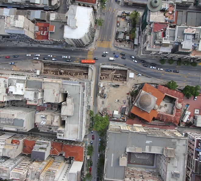 Oι ανασκαφές που διεξάγονται στους δύο σταθμούς εντός του ιστορικού κέντρου της Θεσσαλονίκης, στον Σταθμό Αγίας Σοφίας και στον Σταθμό Βενιζέλου, συμπληρώνουν τον τοπογραφικό χάρτη της πόλης, στο ύψος της διαχρονικά κύριας οδικής αρτηρίας, της σημερινής οδού Εγνατίας. Τα ευρήματα σκιαγραφούν την πολεοδομική οργάνωση του αστικού χώρου της Θεσσαλονίκης από την ίδρυσή της έως το τέλος της όψιμης αρχαιότητας.