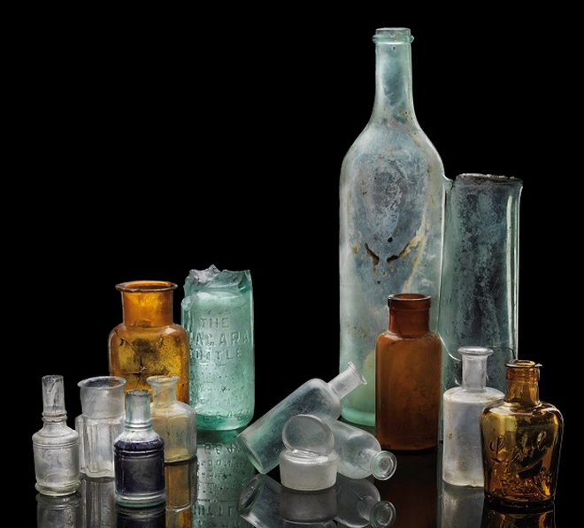 Σταθμός Αγίας Σοφίας. Μπουκαλάκια φαρμακείου από το στρώμα της πυρκαγιάς του 1917