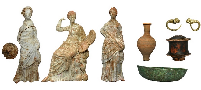 Σταθμός Νέου Σιδηροδρομικού Σταθμού. Κτερίσματα (ειδώλια, κοσμήματα, πήλινα και χάλκινα αγγεία) ελληνιστικής ταφής