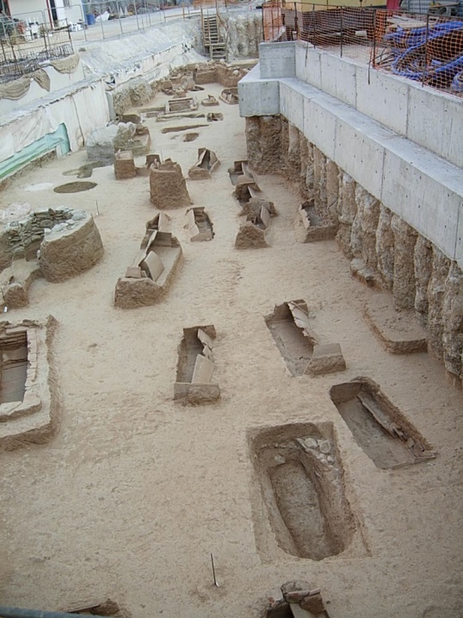 Στο πλαίσιο των εργασιών της κατασκευής του ΜΕΤΡΟ Θεσσαλονίκης, στους σταθμούς Σιντριβάνι, Διασταύρωση Τροχιογραμμών και Πανεπιστήμιο,η αρχαιολογική έρευνα αποκάλυψε μεγάλο τμήμα του ανατολικού νεκροταφείου της πόλης, όπως επίσης και τρίκιλιτη κοιμητηριακή Βασιλική στη θέση παλαιότερου κτηρίου με ψηφιδωτά δάπεδα. Συγκεκριμένα έφερε στο φως χιλιάδες ταφικά μνημεία (3000) τα οποία ήρθαν να εμπλουτίσουν την μέχρι τώρα γνώση μας για την οργάνωση και τη συνεχή χρήση του χώρου από την Ελληνιστική περίοδο έως και την Ύστερη αρχαιότητα. Οι τάφοι ανήκουν σε διαφόρους τύπους, λακκοειδείς, κιβωτιόσχημοι, εγχυτρισμοί, βωμοί, βωμοειδείς κατασκευές, καμαροσκεπείς απλοί ή δίδυμοι, ήταν κτερισμένοι με αγγεία πήλινα και γυάλινα, πήλινα ειδώλια, χρυσά και αργυρά κοσμήματα και νομίσματα.