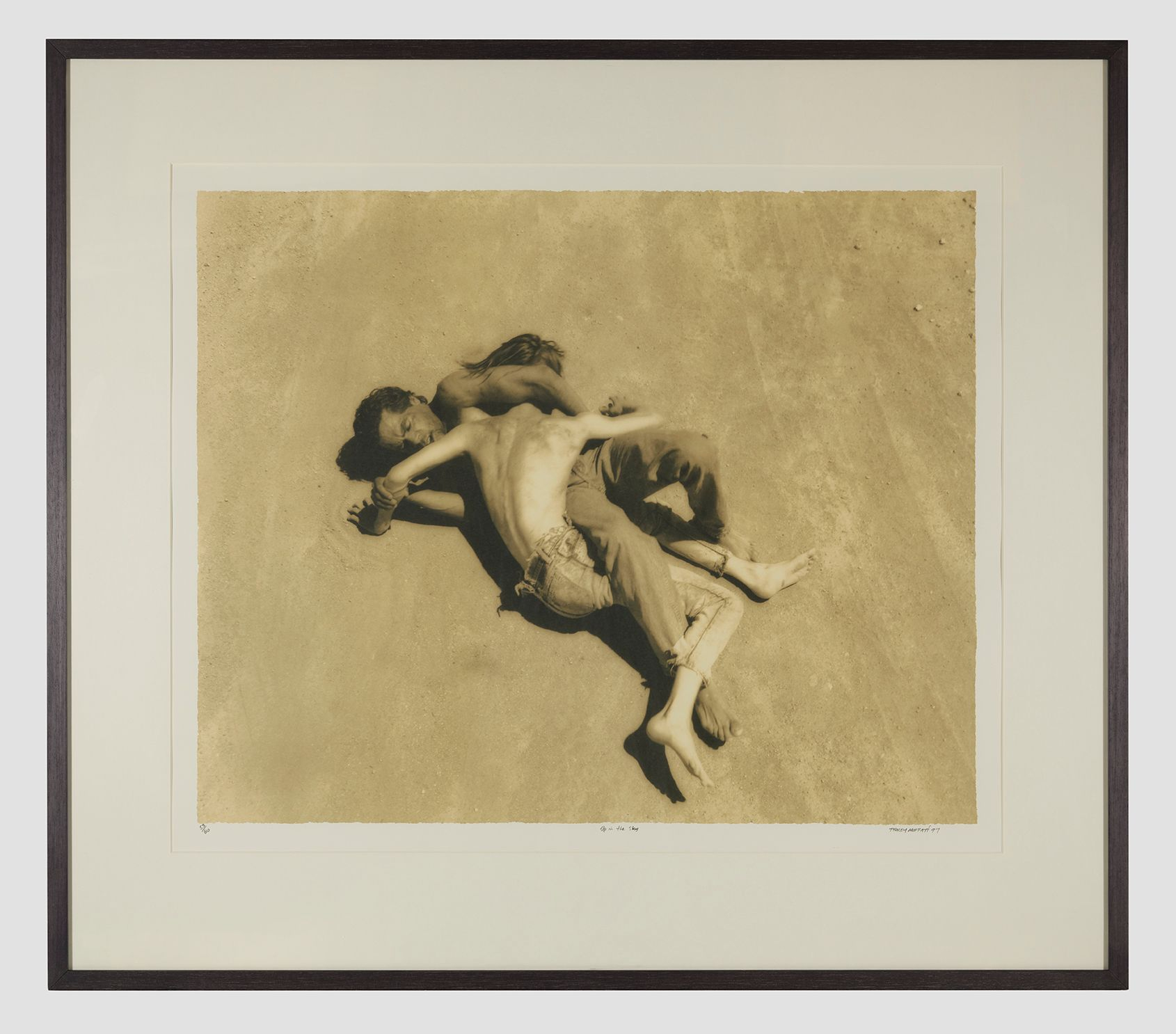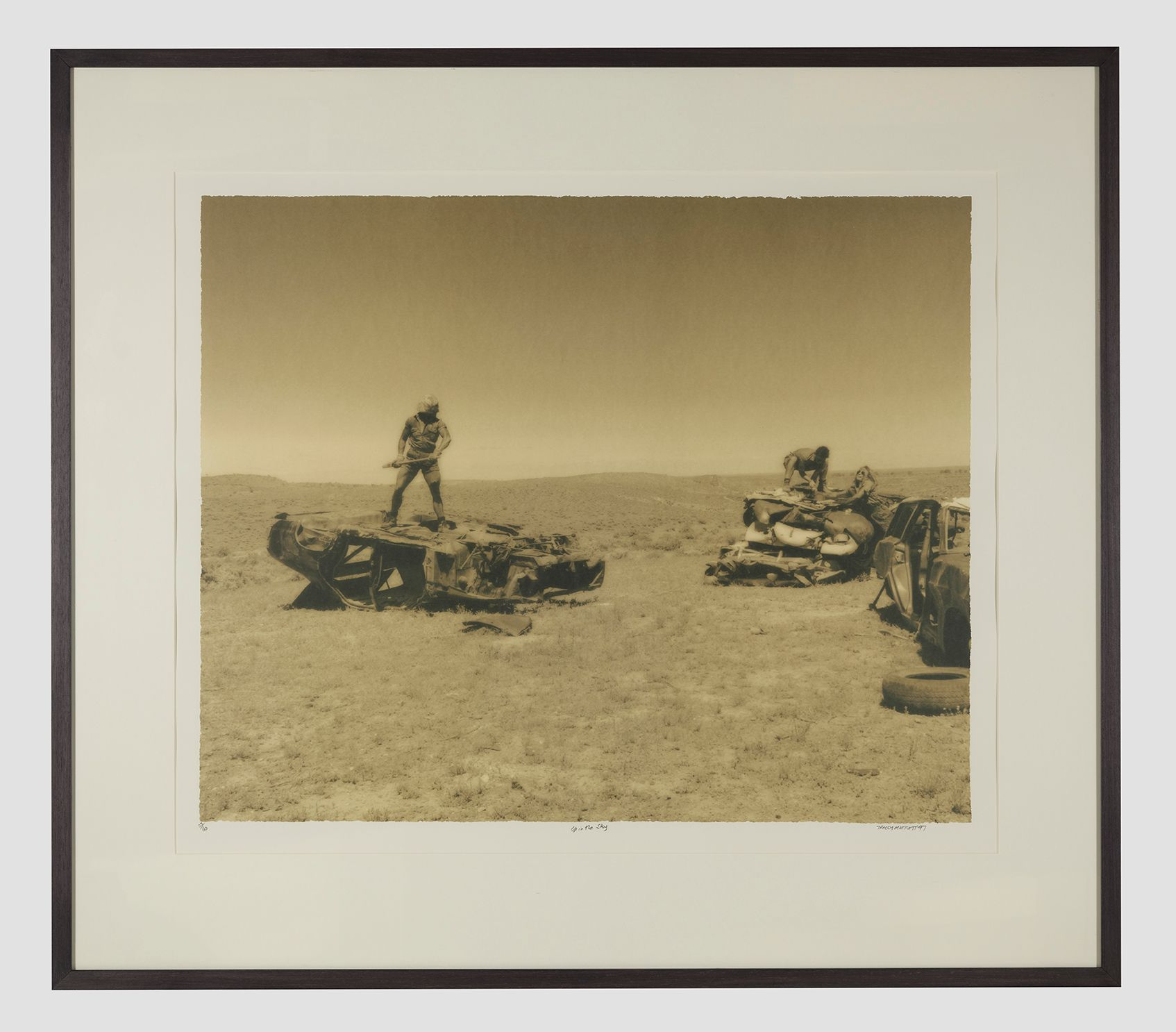 Στις 25 εικόνες της φωτογραφικής εγκατάστασης “Up in the Sky” “συναντιούνται” δύο κινηματογραφικές ταινίες: η μετα-αποκαλυπτική σειρά ταινιών δράσης Mad Max (1979) και ο κόσμος στον οποίο κινείται περιπλανώμενος ο εκδικητής μοναχικός πρωταγωνιστής της, και το φιλμ Accattone (1961) του Pier Paolo Pasolini, μια σκληρή ταινία για τον υπόκοσμο της Ρώμης και τη ζωή στους δρόμους.