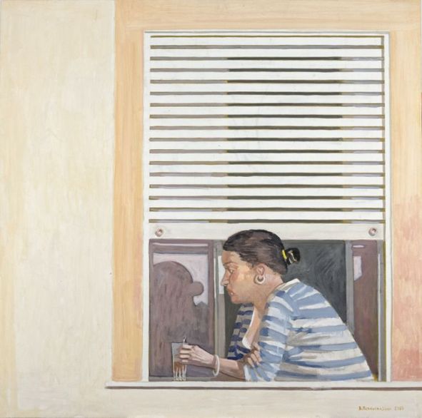 «Γυναίκα στο παράθυρο», αυγοτέμπερα σε κόντρα πλακέ θαλάσσης, 90×90 εκ.