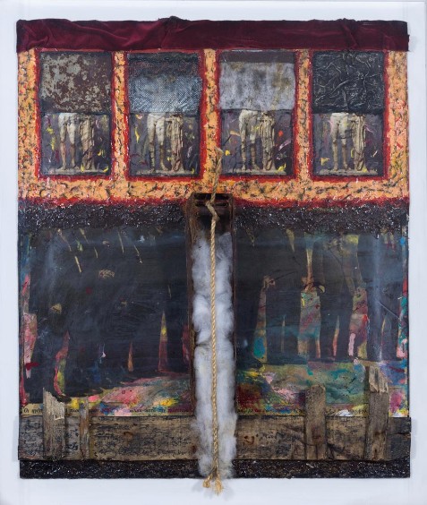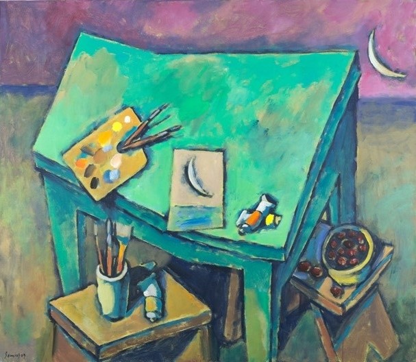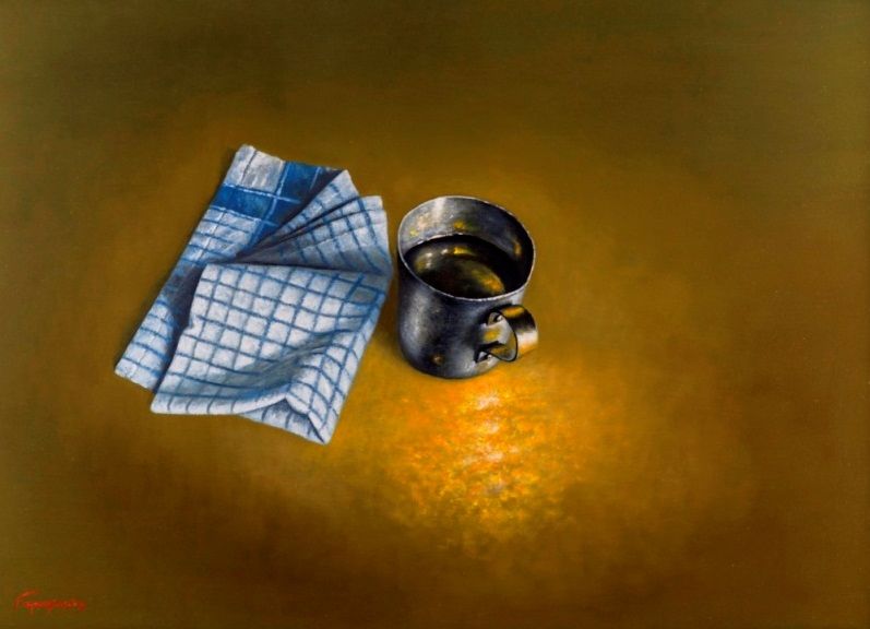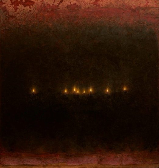 «Σκοτεινή μνήμη της παιδικής πατρίδας», λάδι σε ξύλο και ύφασμα, 96×92 εκ.
