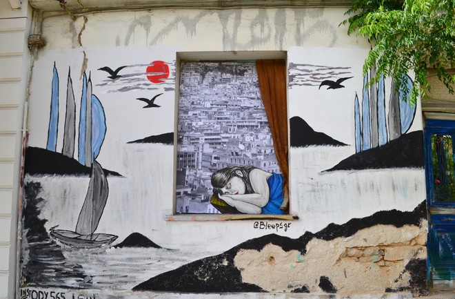Τρία νέα γκράφιτι δημιούργησε ο γνωστός street artist Bleeps.gr στην Αθήνα, με κύρια θεματική τους την σύνδεση του κορονοϊού με τον καπιταλισμό.