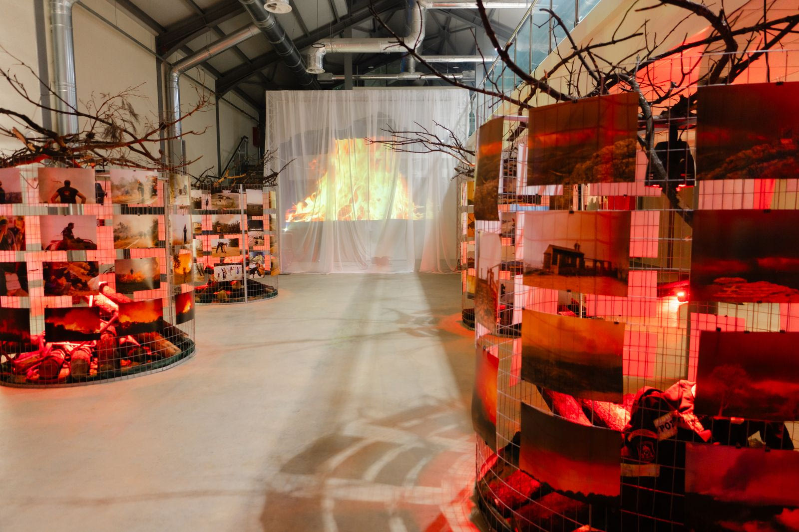 Στην έκθεση, που διοργάνωσε ο Δήμος Αλεξανδρούπολης και φιλοξενείται στην Αποθήκη Νο1 στον λιμένα της πόλης, οι επισκέπτες συνειδητοποιούν ότι οι μνήμες της τραγωδίας στον Έβρο είναι ακόμη νωπές. Δεκαεπτά ημέρες αγωνιώδους προσπάθειας των πολυάριθμων πυροσβεστικών εναέριων και επίγειων δυνάμεων να αναχαιτίσουν την πύρινη λαίλαπα, άνθρωποι που μοιάζουν ανίσχυροι απέναντι στην καταστροφική μανία της φωτιάς, βλέποντας να εξαφανίζει στο διάβα της κτίρια, δάση, καλλιέργειες, τον μικρόκοσμό τους, όπως τον γνώριζαν μέχρι εκείνη τη στιγμή, αλλά όχι παραιτημένοι από την προσπάθεια της αντίστασης.