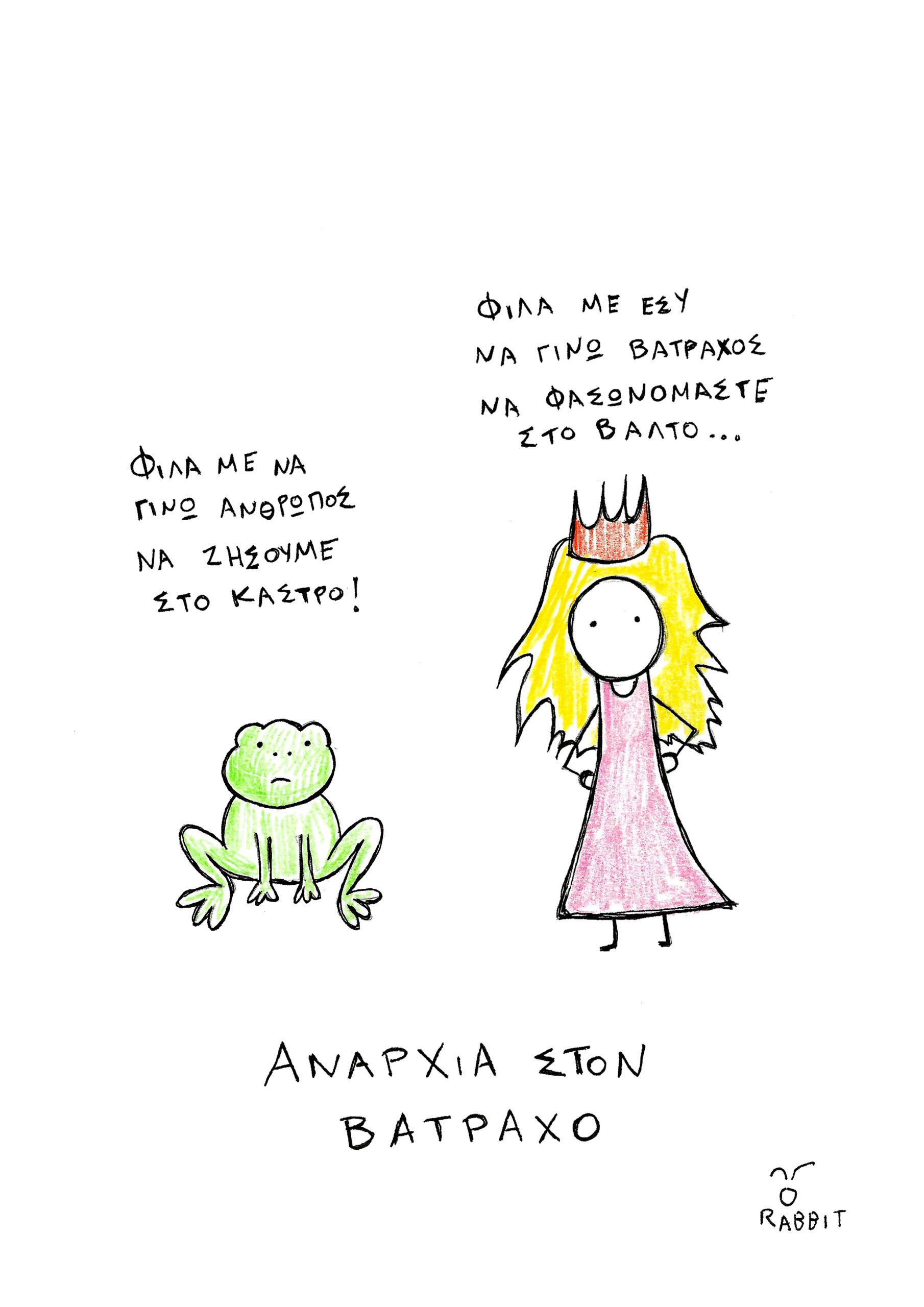 “Μια φορά κι έναν καιρό. Ποια φορά και ποιον καιρό; Παραμύθια που μας λέγανε μικρά, για να μας πάρει ο ύπνος. Παραμύθια που μας λένε οι μεγάλοι, για να μην ξυπνήσουμε. Εφτά νάνοι και οικονομία. Σταχτοπούτα και λιτότητα. Κακός λύκος και ΜΑΤ. Παραμύθια που μας λέμε, και παραμύθια που μας είπαν. Παραμύθια φανταστικά, άλλα πλάσματα της φαντασίας μας και άλλα κατακτητές της.
