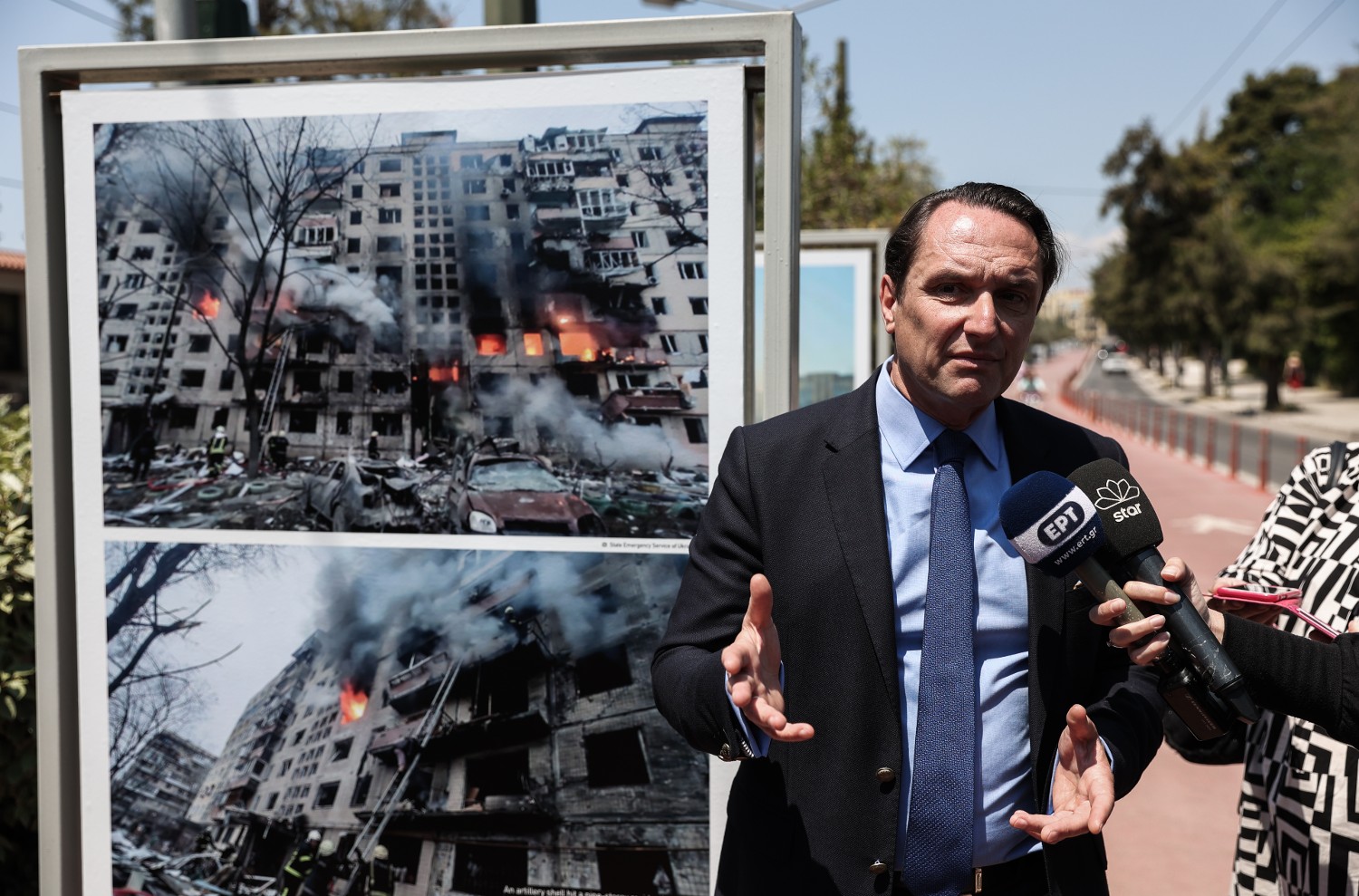 Και συνέχισε λέγοντας: “Βλέποντας αυτές τις φωτογραφίες, μπορούμε να κάνουμε τη σύγκριση. Να συγκρίνουμε την Αθήνα του τώρα με τις ζώσες πόλεις στην Ουκρανία πριν τον πόλεμο. Έτσι, έχουμε την ευκαιρία να κάνουμε τους Έλληνες αλλά και τους τουρίστες που θα επισκεφθούν αυτή την έκθεση, να συνειδητοποιήσουν ότι ο πόλεμος είναι μια φρικαλεότητα και όλοι μας θα πρέπει να είμαστε ενωμένοι και να επιδιώκουμε σαφώς τη γρήγορη παύση και το γρήγορο τέλος του.
