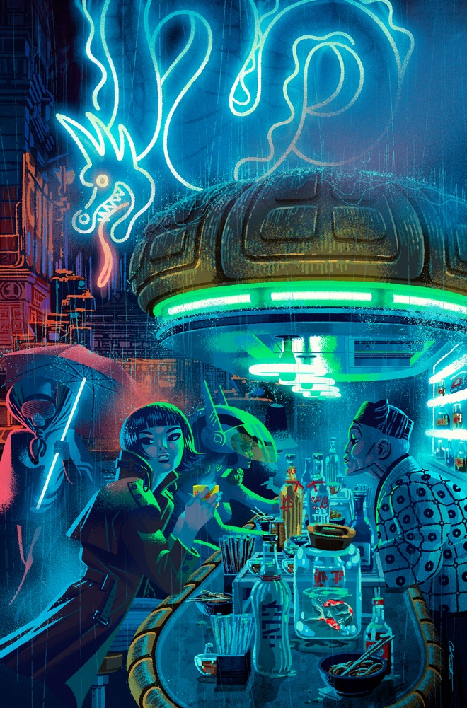 Έχω δικούς μου χαρακτήρες για κόμικ και ετοιμάζομαι αυτόν τον καιρό για να τους εκδώσω. Απλώς πρέπει να διακόψω τα σχέδια μου κάθε φορά που λαμβάνω κάποιο καινούργιο πρότζεκτ είτε από το Βρετανικό πρακτορείο που με αντιπροσωπεύει, είτε από κάποιο από τα Αμερικανικά γκαλερί με τα οποία συνεργάζομαι. Εκείνοι αγοράζουν τα δικαιώματα διαφόρων brands της ποπ κουλτούρας για να βγάζουν διαφορά prints, αφίσες, και μεταξοτυπίες σε συνεργασία με καλλιτέχνες. Γι’αυτό λοιπόν έχω τόσα έργα με Μπάτμαν και Ντίσνεϋ, τα οποία είχα την μεγάλη τιμή να μπορέσω να τα δημιουργήσω διότι έχω μια πολύ καλή σχέση και συνεργασία με τα παιδιά του Bottleneck gallery στη Νέα Υόρκη. Η πρώτη μου δουλειά σε εκείνον τον χώρο ήταν μια αφίσα  μεταξοτυπίας του Adventure Time για την Mondo. Αυτόν τον καιρό ετοιμάζω κάποια πολύ ωραία πρότζεκτ με τους Sideshow Collectibles.»