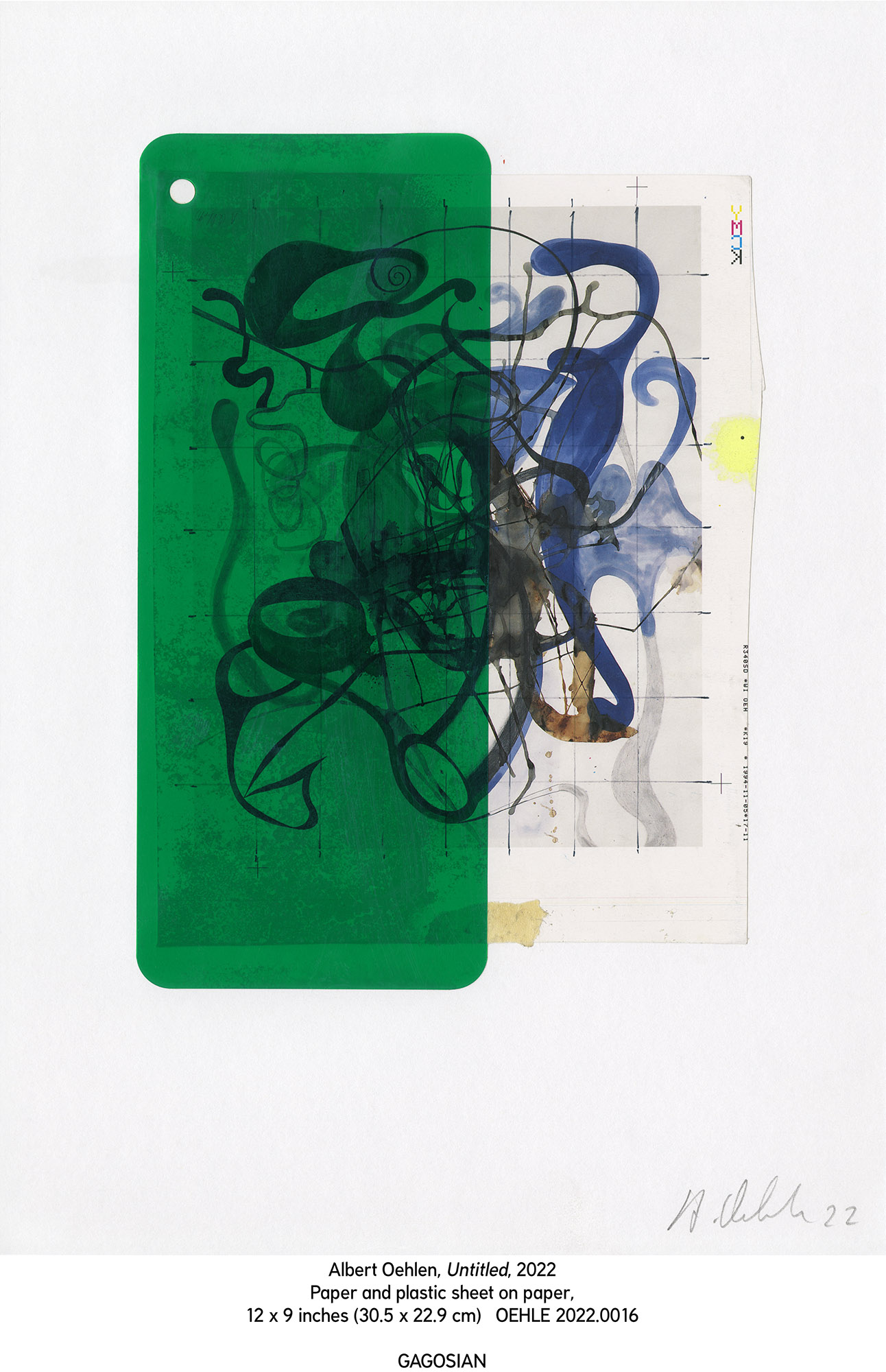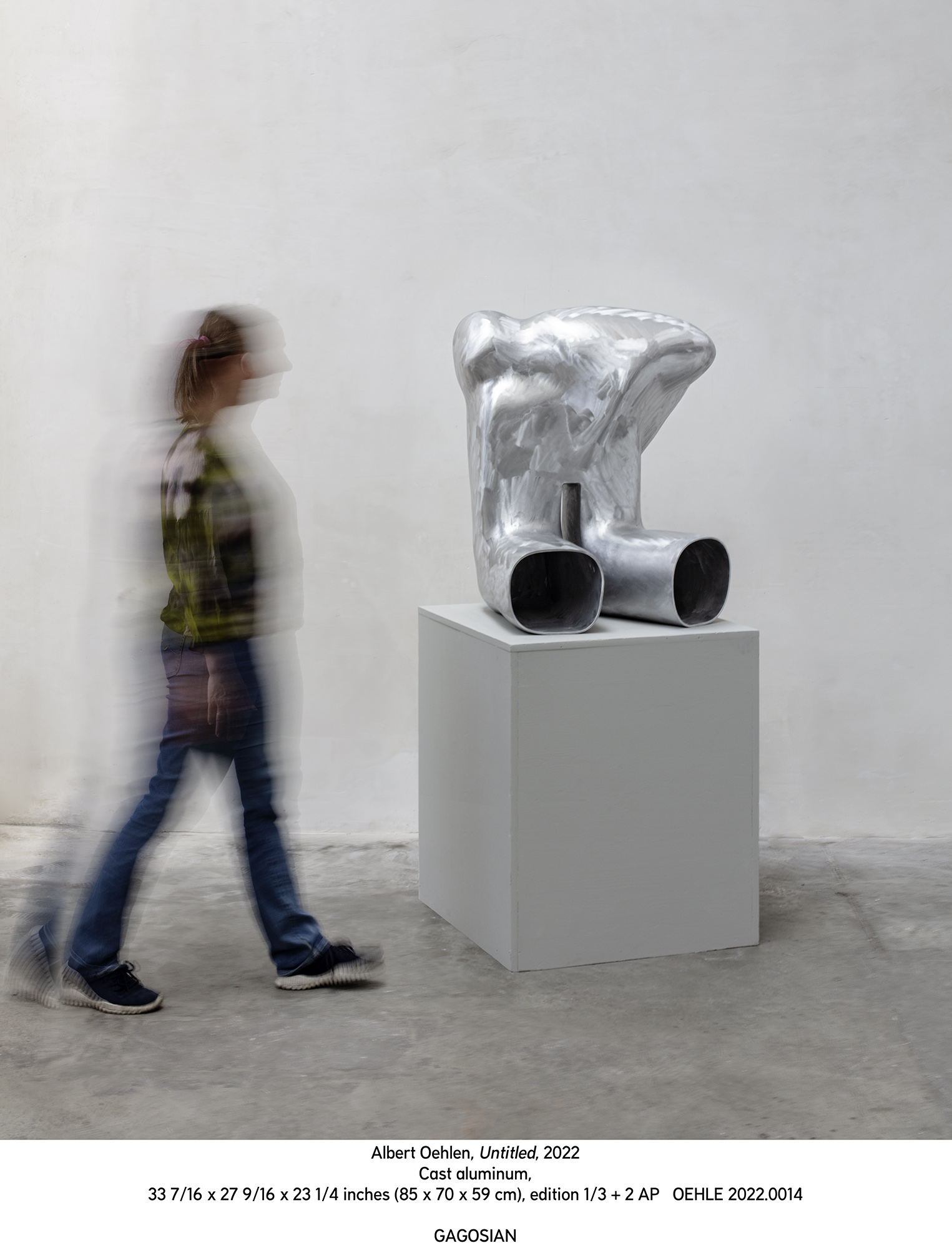 Στο μοναδικό γλυπτό της έκθεσης, ο Oehlen παραπέμπει στο αινιγματικό μοτίβο του Ωmega Man, ενός άφυλου ανθρωποειδούς Gagosian