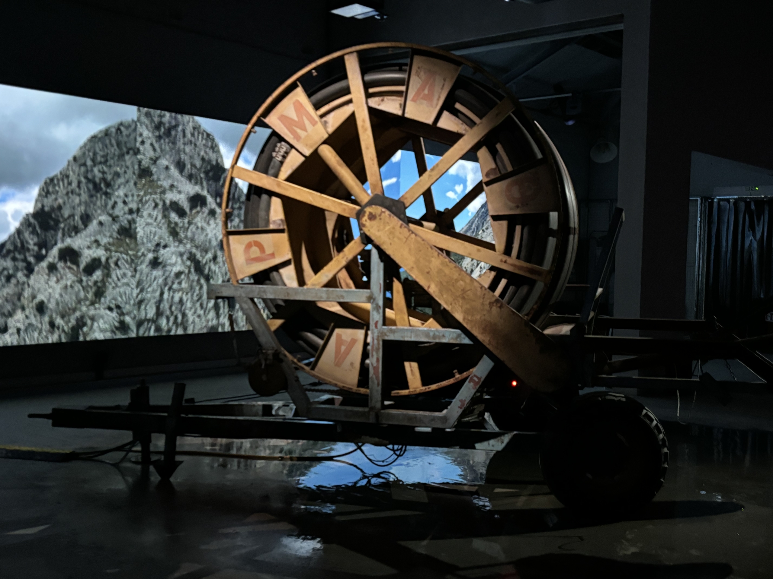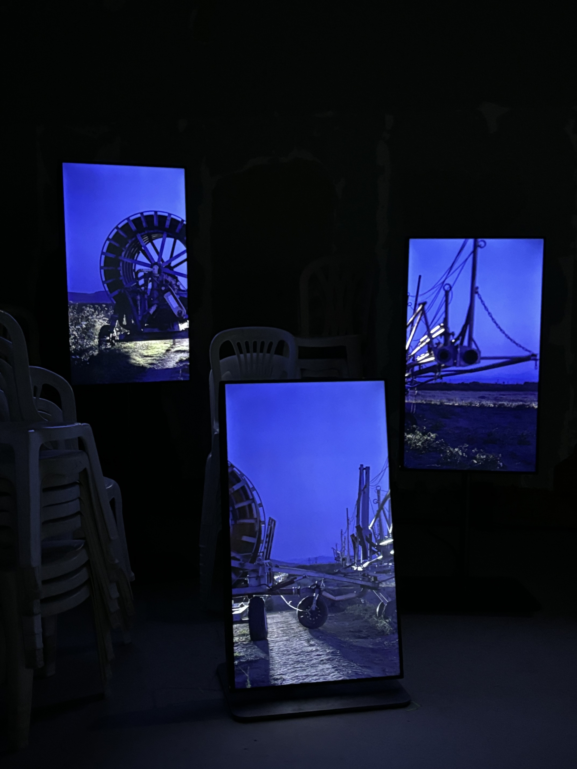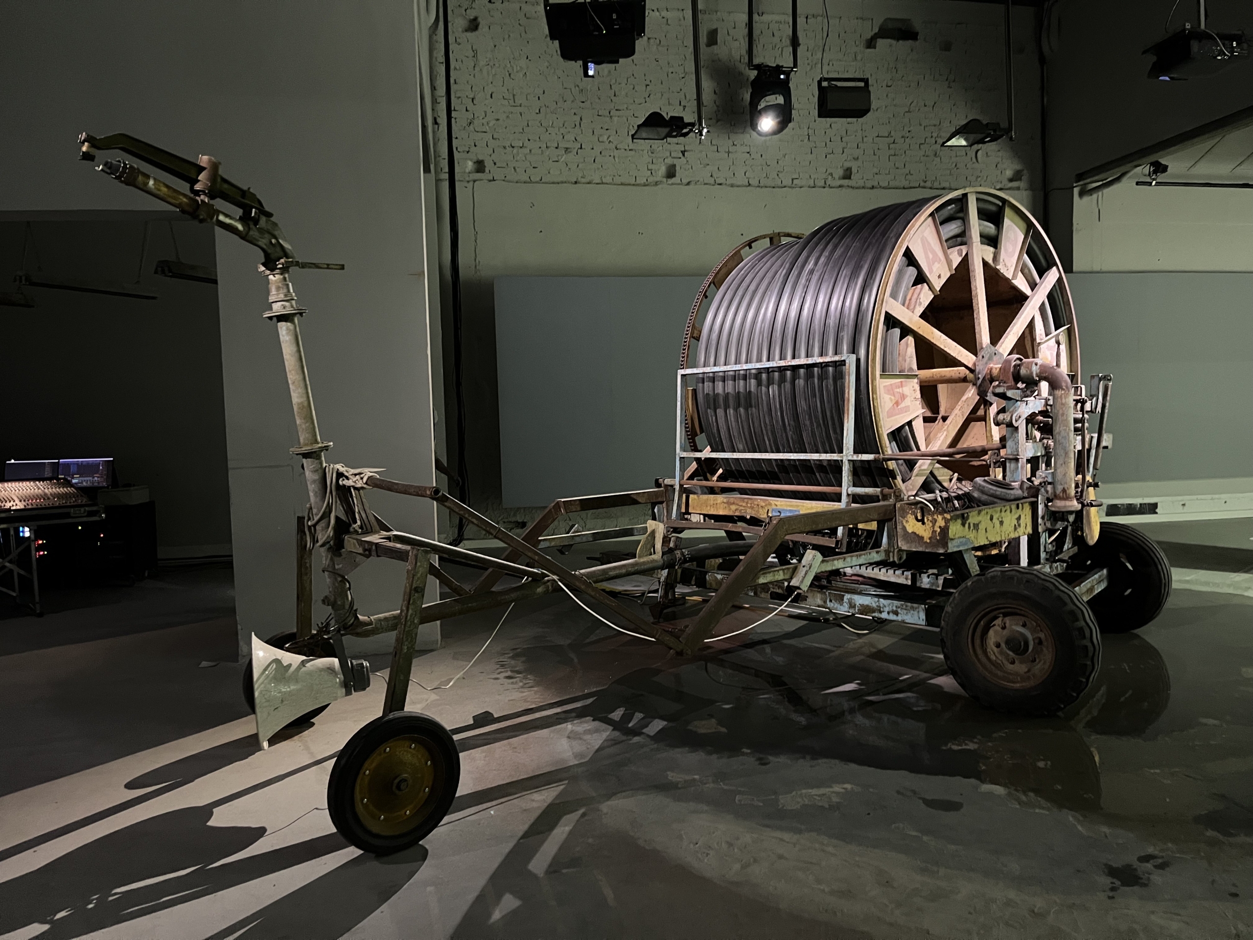 Το Ξηρόμερο/Dryland που εκπροσωπεί την Ελλάδα στην 60ή Μπιενάλε της Βενετίας, είναι ένα διαμεσικό συλλογικό έργο που αποτελείται από ένα αγροτικό μηχάνημα άρδευσης.