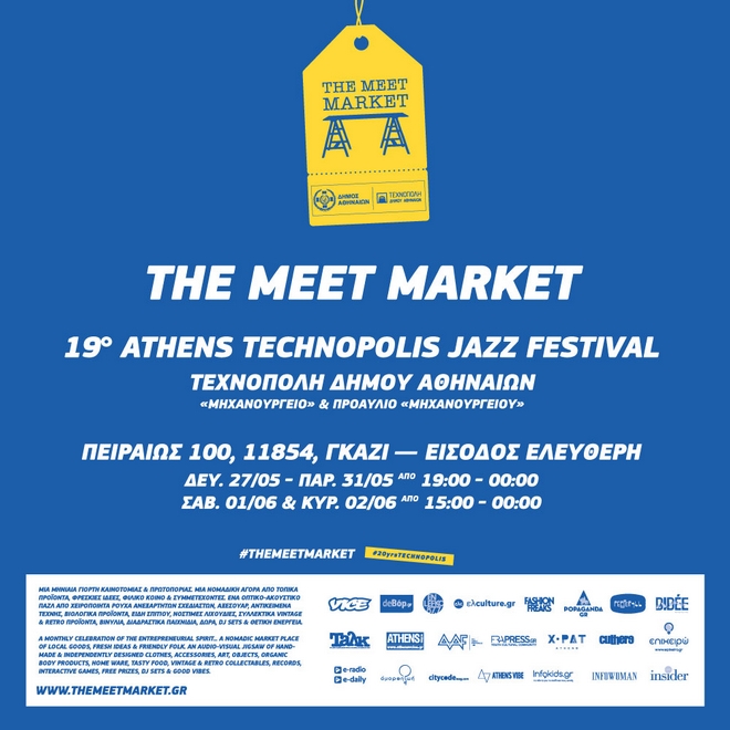 Αυτό δεν θα είναι ένα απλό Meet Market, αυτό θα είναι ένας μαραθώνιος! Από τη Δευτέρα 27 Μαΐου έως και την Κυριακή 2 Ιουνίου, για 7 ολόκληρες ημέρες, κατασκηνώνουμε στο Γκάζι με 120+ περίπτερα ανεξάρτητων ελληνικών μικρών & μεσαίων επιχειρήσεων. Μεταμορφώνουμε, για ακόμη μια φορά, την Τεχνόπολη σε τόπο συνάντησης καλλιτεχνών, σχεδιαστών, παραγωγών και επισκεπτών υπό τους ρυθμούς καθημερινών non stop jazz συναυλιών!