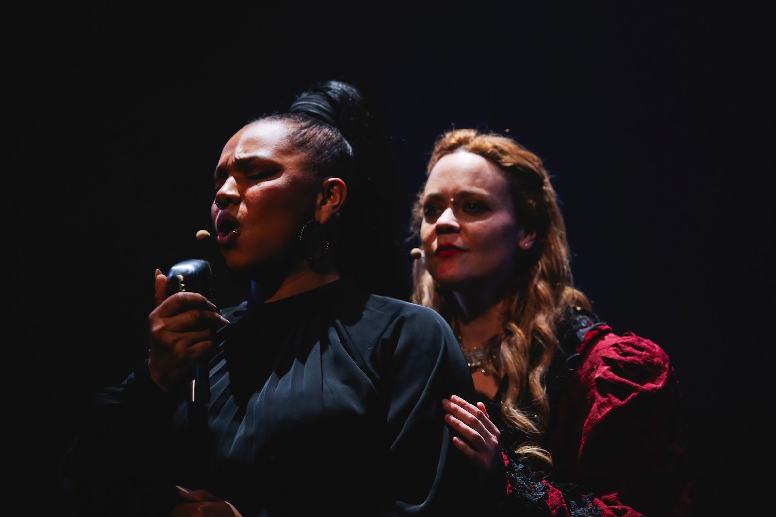 Η Λένα Παπαληγούρα, ως Σκάρλετ Ο’ Χάρα, αποδίδει με ένταση όλες τις αντιφάσεις του χαρακτήρα της, ισορροπώντας ανάμεσα στη σκληρότητα και τη ρομαντική ευαλωτότητα. Ο Ορέστης Τζιόβας, στον ρόλο του Ρετ Μπάτλερ, σκιαγραφεί με βάθος έναν άντρα που ταλαντεύεται ανάμεσα στον κυνισμό και την αφοσίωση, χαρίζοντας στην ερμηνεία του δραματικό βάρος. Η Idra Kayne, ως Μάμμυ αλλά και αφηγήτρια, δίνει φωνή στην αλήθεια και τη δικαιοσύνη, μετατρέποντας έναν παραδοσιακά περιθωριοποιημένο ρόλο σε κεντρικό άξονα της αφήγησης με δύναμη, συγκίνηση και υποκριτική ακρίβεια.