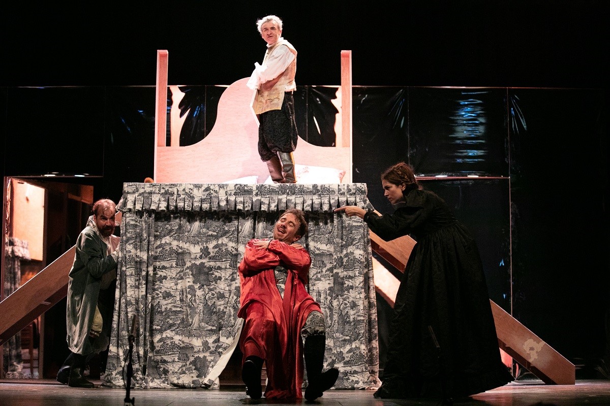 Ο Θανάσης Τσαλταμπάσης στον διπλό ρόλο του Μπεζάρ και του Αργκαν ήταν εντυπωσιακός, κυρίως γιατί στη χειμαρρώδη υποκριτική του δύναμική του είδαμε να περνούν με τη σειρά πολλοί από τους Έλληνες κωμικούς ηθοποιούς, τον Διονύση Παπαγιαννόπουλο, τον Κώστα Βουτσά, τον Κώστα Χατζηχρήστο, τον Λάμπρο Κωνσταντάρα (ιδιαίτερα όταν φώναζε εμμονικά “Ο Λουδοβίκος, ο Λουδοβίκος, ο Λουδοβίκος”, πράγμα που παραπέμπει ευθέως “ο Στέφανος, ο Στέφανος, ο Στέφανος” στην ταινία “Της ζήλειας τα καμώματα”). Στο ιδιο, υψηλό επίπεδο ερμηνειών, κινήθηκαν και οι υπόλοιποι ηθοποιοί της παράστασης: Μας εξέπληξε η κωμική στιβαρότητα του του Νίκου Ορφανού, αλλά και ο Αλέξανδρος Ζουριδάκης ως Μολιέρος, η “στριφνή” Μαρία Παπαφωτίου στον διπλό ρόλο της υπηρέτριας, αλλά και της συζύγου του Μπεζάρ, η Αγοραστή Αρβανίτη ως η πανούργα σύζυγος του Αργκαν και πρωτότοκη κόρη του Μπεζάρ, η δροσερή Νάστια Βραχάτη τράβηξε την προσοχή μας στον διπλό ρόλο της κόρης, συνεπής στις εναλλαγές του ρόλου του ο Δημήτρης Καλαντζής και απολαυστικός ο Ορφέας Παπαδόπουλος στον διπλό ρόλο του Ιππότη και του Κλεάντ.