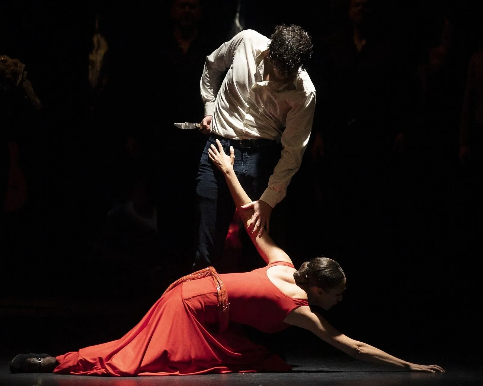 Το 1983, ο χορευτής και χορογράφος Antonio Gades και ο σκηνοθέτης Carlos Saura έφεραν αυτόν τον χαρακτήρα στη σκηνή με έναν τρόπο άμεσο και γυμνό, σχεδόν ωμό. Η χοροθεατρική τους Carmen, βασισμένη στη νουβέλα του Prosper Mérimée (1845), παρουσιάστηκε για πρώτη φορά στο Παρίσι, λίγο μετά την κινηματογραφική τους επιτυχία, και απέδειξε ότι ο μύθος της Carmen μπορεί να σταθεί χωρίς διακοσμητικά στοιχεία, μόνο με ρυθμό και ένταση.