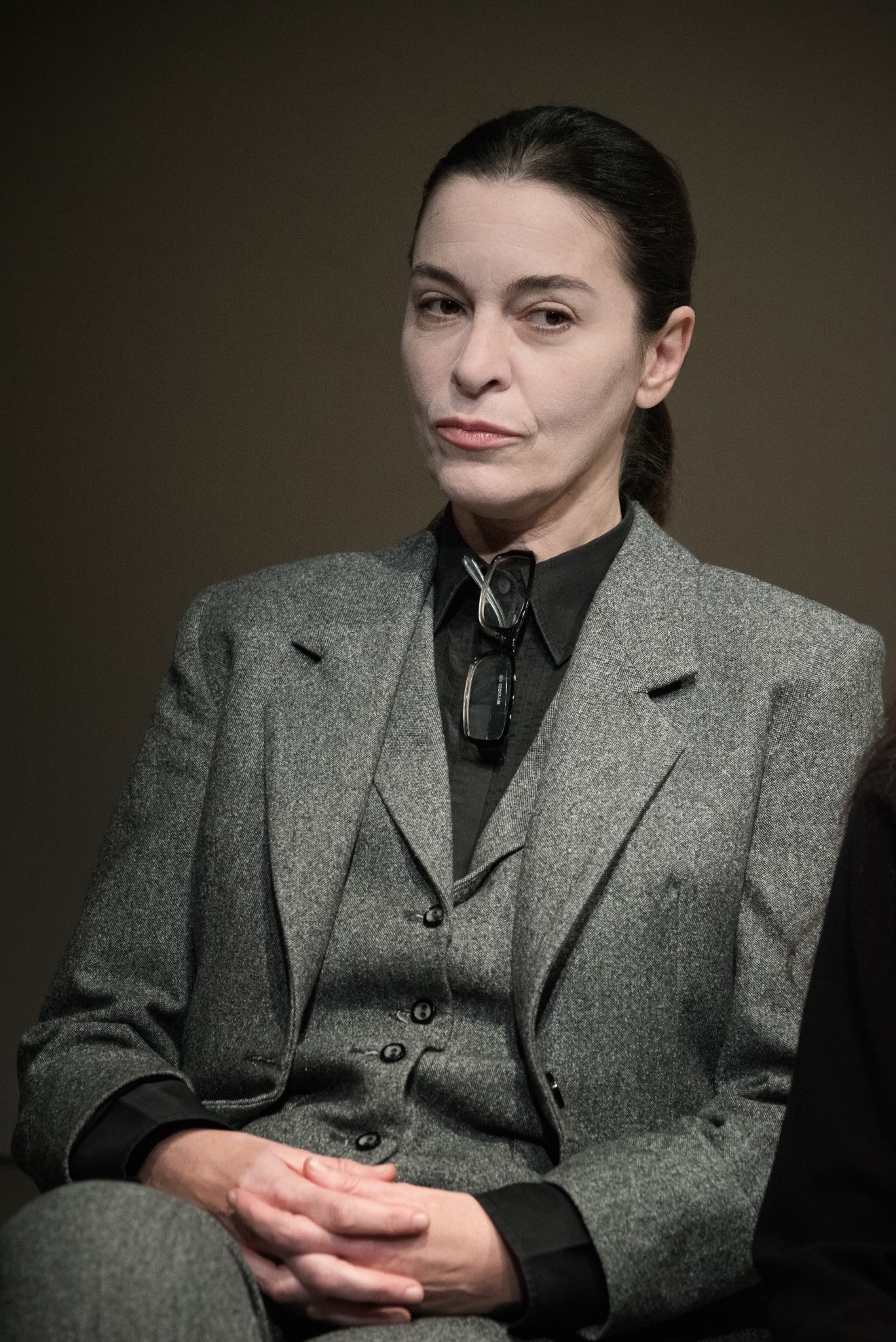 Η ανάγνωσή της είναι βαθιά προσωπική και δουλεμένη στην τελευταία λεπτομέρεια. Η προσέγγισή της καθαρά και απολύτως φορμαλιστική με συγκεκριμένη οπτική, όραμα, συμβολισμούς και ιδέες που δε σε αφήνει να πάρεις ανάσα. Όλα επικοινωνούν μεταξύ τους: το έξοχο λευκό, αλλά ταυτόχρονα και δυστοπικό σκηνικό της Εύας Ναθένα, τα υπαινικτικά σχεδιασμένα κοστούμια της, αλλά και τα κοσμήματα (αρκεί να παρατηρήσει κάποιος τον Κρέοντα και τον Αίμονα και θα καταλάβει). Ευφυής η σύλληψη της να χρησιμοποιήσει την τεχνική του θεατρικού εγκιβωτισμού με την ίδια να κρατά τον ρόλο του συντονιστή, του ρυθμιστή των πάντων και εκπροσώπου της υπεράνω εξουσίας. Σαν άλλος Θεός, παραλείπει σκηνές, δίνει οδηγίες στους ηθοποιούς για το πώς να κινηθούν, πώς να εκφέρουν και πώς να τονίσουν τις λέξεις τους. Είναι αυτή που καθισμένη στην πρώτη σειρά, κινεί τα νήματα έχοντας ανοιχτό μπροστά της το κείμενο του έργου, κρατώντας διαρκώς σημειώσεις και υπαγορεύοντας φράσεις σαν υποβολέας. “Παίζει” έτσι και η ίδια με την εύθραυστη έννοια της εξουσίας, αυτής που μας ασκείται και αυτής που ασκούμε και οι ίδιοι με τη σειρά μας. Και η θεατρική συνθήκη δεν εξαιρείται αυτής.