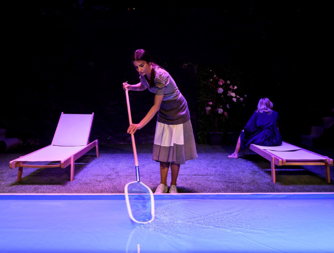 “Μια Κυριακή κάποια από τα πρόσωπα του έργου θα παλέψουν για το δίκιο τους και κάποια θα τους «δικάσουν», στον εξωτερικό χώρο μιας πολυτελούς πισίνας σε ένα προάστιο της Αττικής. Όλοι θα έχουν δίκιο. Και όλοι έχουν άδικο. Όπως είθισται άλλωστε στη σύγχρονη κοινωνία. Σε κάθε κοινωνία που χάνει τον προσανατολισμό της. Στο τέλος της ημέρας θα έχει μείνει μόνο μια επίγνωση. Ένα μερίδιο έστω, για κάποιους μικρό, για άλλους μεγαλύτερο. Πάντοτε όμως εκ των υστέρων. Όπως συμβαίνει πάντοτε με όλες τις επιγνώσεις μας” συνεχίζει ο σκηνοθέτης στο σημείωμα του.