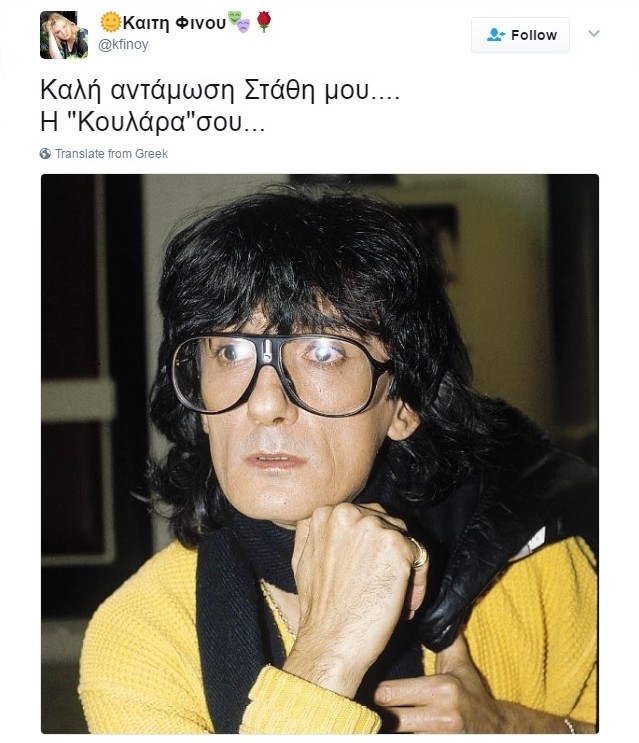 Ζευγάρι για πολλά χρόνια στις τηλεοπτικές ταινίες, αλλά και στη ζωή, η Καίτη Φίνου αποχαιρέτησε τον Στάθη ψάλτη με ένα σύντομο μήνυμά της στο Twiter.