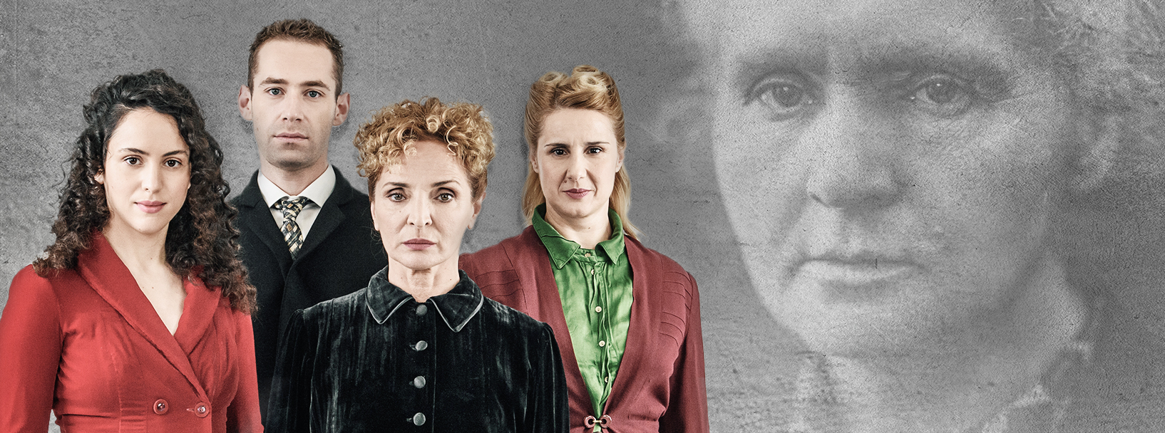 • Ερμηνεύουν: Μαρί Κιουρί: Κωνσταντίνα Τάκαλου/Ιρέν Κιουρί: Ιφιγένεια Καραμήτρου/Μπρόνια Σκλοντόφσκα: Κατερίνα Λυπηρίδου/Πιερ Κιουρί: Γιάννης Παπαδόπουλος/