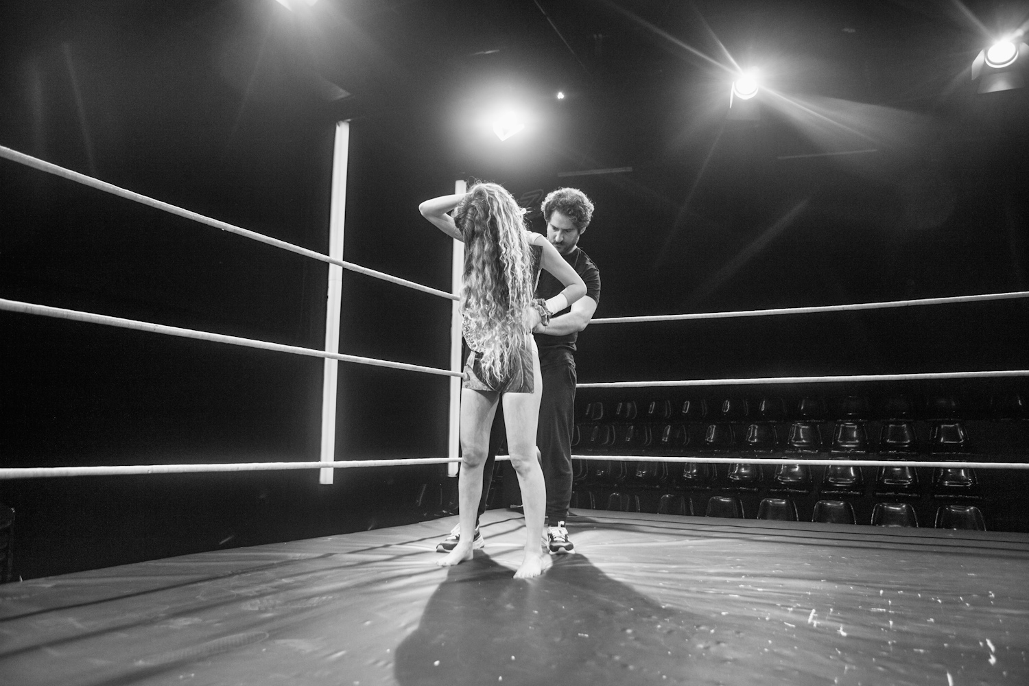 Λένε για το θέατρο πως είναι μαραθώνιος, αγώνας δρόμου, πρωταθλητισμός, ψυχοθεραπεία. Για εμένα είναι ό,τι θες, αλλά κυρίως είναι πάλη. Και ο ηθοποιός δεν είναι εργαλείο, είναι παλαιστής. Νικητής και χαμένος, κάθε φορά, απ’ τον χρόνο. Από τη γέννα της ιδέας, μέχρι τον θάνατο. Και οι ιδέες δεν πεθαίνουν. Άρα, πάλη για πάντα. Να γράψουμε; Να καλέσουμε κόσμο; Να βάλουμε εισιτήριο; Να είμαστε ήρωες ή αντιήρωες; Να λυτρωθούμε; Έχει αρχίσει; Θα τελειώσει; Πού πάει όταν τελειώνει; Τελειώνει; Παλεύω μέσα μου κάθε λεπτό. Ακόμα και τώρα που απαντώ αυτή την ερώτηση και σβήνω και γράφω. Το ρινγκ είναι η πιο κοντινή εικόνα σ’ αυτό το μέσα.