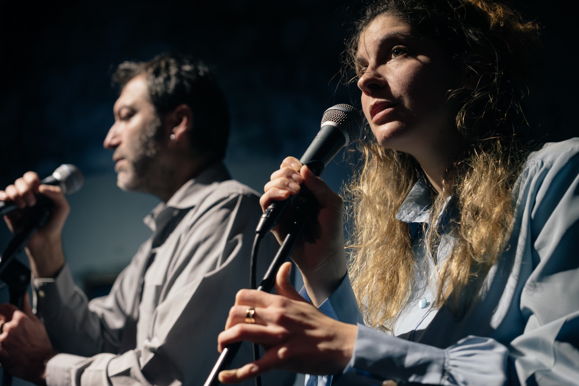 12 χρόνια μετά που είχα αποφοιτήσει από τη δραματική σχολή, πήγα να δω τις διπλωματικές εξετάσεις της Ηρώς. Και τη θαύμασα. Από τότε ξεκινήσαμε να παρακολουθούμε αμφότεροι τις παράλληλες καλλιτεχνικές μας πορείες. Μέχρι που το 2019 της πρότεινα να ξεκινήσουμε να βρισκόμαστε, να διαβάζουμε διάφορα κείμενα και να προτείνουμε αυτά που αγαπάμε, έχοντας ως προοπτική τη σκηνική μας συνύπαρξη. Έτσι και έγινε λοιπόν, με αποτέλεσμα την πρώτη μας συνεργασία στο «Όφις και κρίνο» του Νίκου Καζαντζάκη, το 2020 στο Bios. Αυτή η καλλιτεχνική σύμπραξη μάς έφερε ακόμα πιο κοντά, καλλιεργώντας μία βαθιά αγάπη μεταξύ μας”.