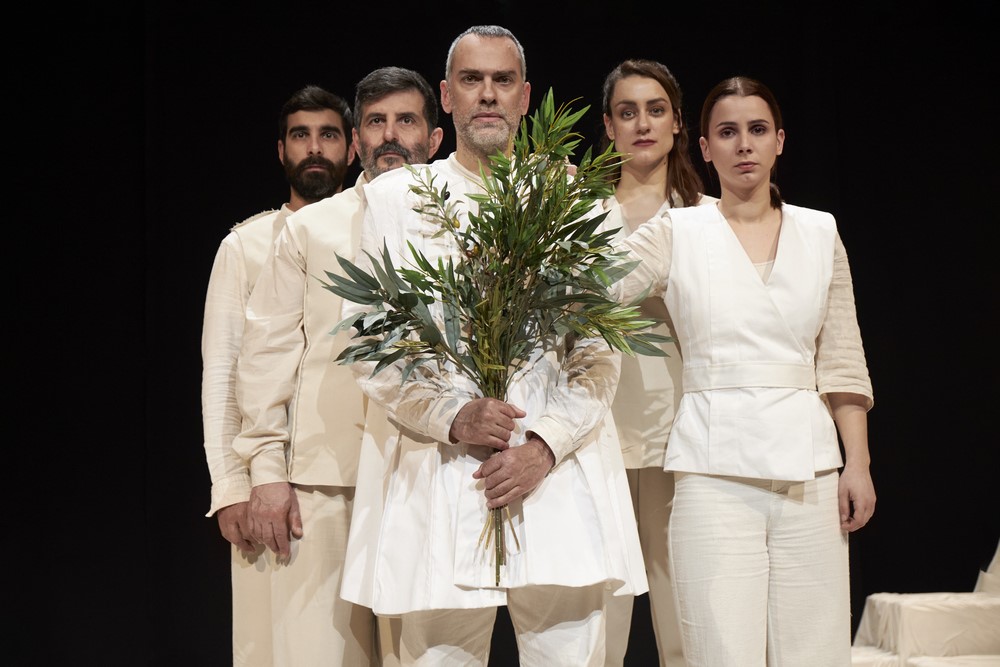 Στην αρχή των προβών, ένας από τους πολλούς γρίφους που είχαμε να λύσουμε ήταν το πώς αντιμετωπίζεις το έμμετρο κείμενο; Αν το προσεγγίσεις με όρους πρόζας και ρεαλιστικού θεάτρου δεν θα σε βγάλει πουθενά ή κι αν σε βγάλει κάπου, θα έχεις αφαιρέσει ένα βασικό στοιχείο της φύσης του έργου. Η απάντηση λοιπόν θα περνούσε σίγουρα μέσα από τον ρυθμό και την μελωδία του λόγου. Η μετάφραση του Βάρναλη αρχικά μας φαινόταν δύσκολη. Η ηλικία της άλλωστε είναι πάνω από 100 ετών. Την προτιμήσαμε όμως, γιατί εμπιστευτήκαμε τον ρυθμό του ποιητή, ξέροντας πως αν τον ακολουθήσουμε, κάπου καλά θα μας βγάλει. Κι έτσι έγινε. Πολύ γρήγορα, στις πρόβες, η γλώσσα του κειμένου μάς έγινε οικεία και μάς αποκαλύφθηκε σε όλες της τις αρετές. Είναι μια γλώσσα που ζητάει την προσοχή των θεατών στο άκουσμά της, αλλά αν αφεθείς, σε παρασέρνει σαν κυματάκι μέσα στην ιστορία του έργου.