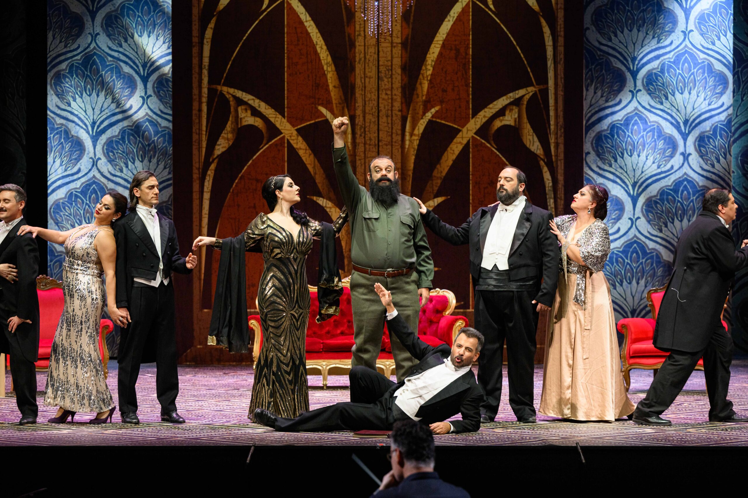 Στην παράσταση συμμετέχει ένα εξαιρετικό καστ, με σπουδαίους Έλληνες λυρικούς πρωταγωνιστές, την Άννα Στυλιανάκη, τη Χρύσα Μαλιαμάνη, τη Μαρισία Παπαλεξίου, τη Μάρθα Σωτηρίου, τον Δημήτρη Παξόγλου, τον Χάρη Ανδριανό, και τον Τάση Χριστογιαννόπουλο, αλλά και τον δημοφιλή ηθοποιό, Θανάση Τσαλταμπάση.