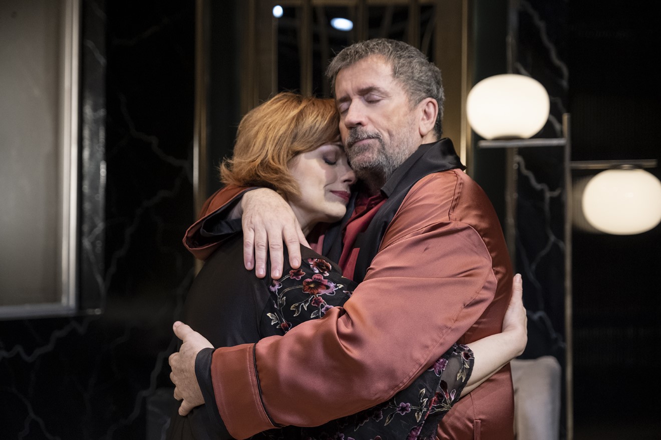 Στο πρόσωπο της Δάφνης Λαμπρόγιαννη βρήκε την ιδανική συμπρωταγωνίστρια. Και παρότι συνεργάζονται πρώτη φορά στο θεατρικό σανίδι, έδεσαν με μία ιδιαίτερη χημεία. Οι δυο τους κινούνται με άνεση στους ρόλους τους και χωρίς να επαναπαύονται στις υποκριτικές τους δεξιότητες, καταφέρνουν να εκφράσουν τον εύθραυστο ψυχισμό των ηρώων και να ακροβατήσουν με επιτυχία στα ψυχολογικά τους σκαμπανεβάσματα. Θα μείνω λίγο περισσότερο στην ερμηνεία της Δάφνης Λαμπρόγιαννη, γιατί διατήρησε καθόλη την παράσταση μία συγκινητική εσωτερική ένταση, ακόμη και τη στιγμή του μεγάλου ξεσπάσματός της. Εντυπωσιακά πολυτελές, καλαίσθητο και πολύ λειτουργικό το σκηνικό της Ηλένιας Δουλαδίρη εναρμονίστηκε εξαιρετικά με την ατμόσφαιρα της παράστασης.