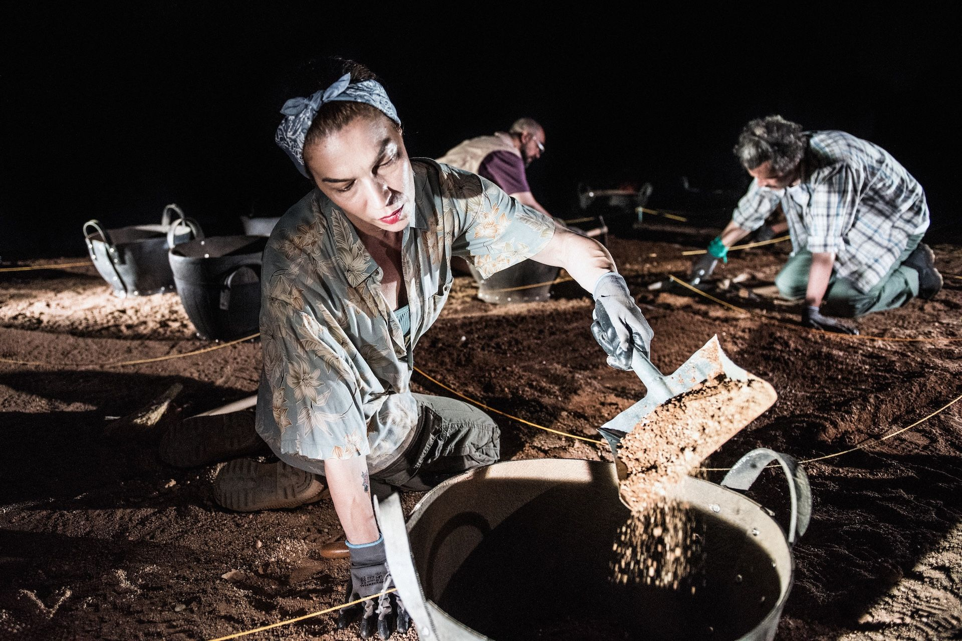 Οι ανασκαφικές εργασίες που επιχειρούμε επί σκηνής είναι μια ωραία αφορμή να υπενθυμίσουμε (σε ποιον άραγε;) ότι η δουλειά στο θέατρο περιμένει υπομονετικά δεκαετίες τώρα να αποτινάξει την κοινωνική απαξίωση, να συμπεριληφθεί μεταξύ των «κανονικών» επαγγελμάτων για τα οποία δεν χρειάζεται να απαντάς σε ερωτήσεις όπως «εκτός από ηθοποιός, με τι άλλο ασχολείσαι;»
