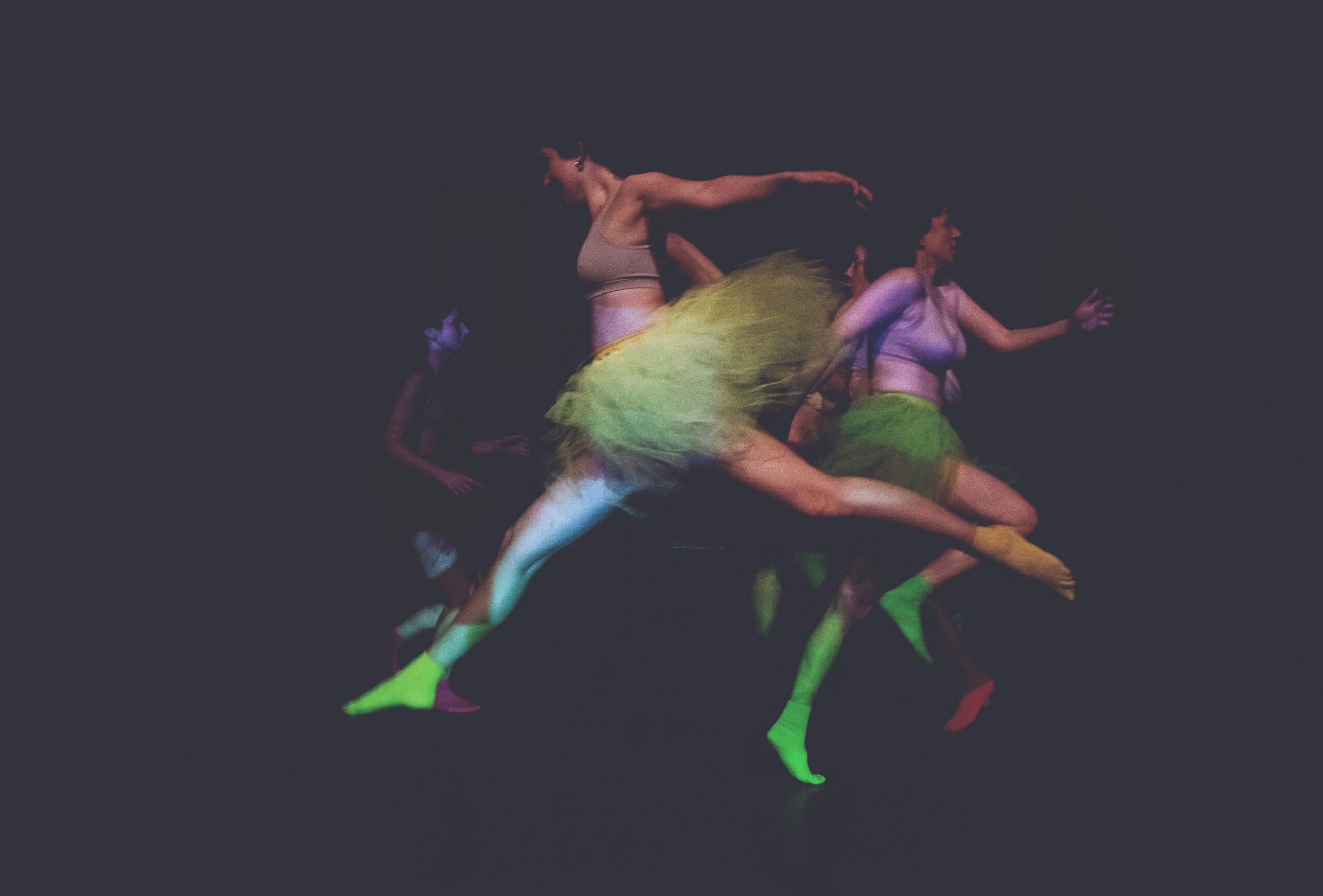 Επτά «μπαλαρίνες» της διπλανής πόρτας αφηγούνται επί σκηνής πέντε κωμικοτραγικές ιστορίες απ’ αυτές που όλοι νομίζουμε ότι συμβαίνουν μια στο τόσο, απ’ αυτές που συμβαίνουν κάπου μακριά από μας. Άνθρωποι που τρώνε μαζεμένοι σε οικογενειακά τραπέζια, δουλεύουν οχτάωρα σε κατάμεστες δημόσιες υπηρεσίες, μεγαλώνουν παιδιά, έχουν συζύγους και γιαγιάδες. Άνθρωποι ευάλωτοι που κρύβονται κάτω από τραπέζια, άνθρωποι που παραπλανούν χαμογελώντας ή χαμογελούν παραπλανημένοι και πάντως εξακολουθούν να ονειρεύονται. Τους βλέπουμε να πονούν, να ακρωτηριάζουν και να ακρωτηριάζονται συναισθηματικά, να αφήνονται στα σκοτεινότερα των ενστίκτων τους και μπλεγμένοι καθώς είναι στο κουβάρι της ζωής να αναπαράγουν σαν αναπόδραστο μοτίβο τη βία και την κακοποίηση.