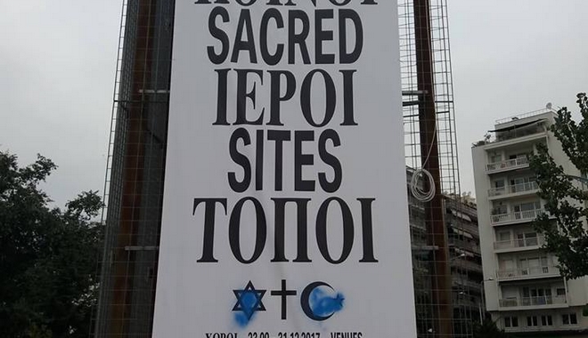 Φέτος συνεχίσαμε το όνειρο της ειρηνικής συνύπαρξης, θρησκευτικής, πολιτισμικής και καλλιτεχνικής, όπως αρμόζει στη Θεσσαλονίκη, με την τριμερή έκθεση «Κοινοί Ιεροί Τόποι». Κάποιοι συμπολίτες μας, ωστόσο, δεν μοιράζονται το όνειρο, όπως δείχνει ο άμεσος βανδαλισμός των banners της έκθεσης.