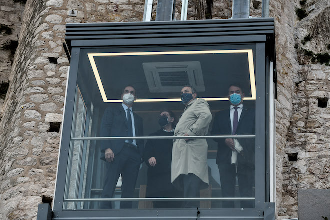 Σ αυτήν ακριβώς την συνάντηση «ο κ. Παπαδημητρίου ενημέρωσε τον Πρωθυπουργό για την απόφαση του Ιδρύματος να χρηματοδοτήσει την εγκατάσταση σύγχρονου ανελκυστήρα πλαγιάς (αντί του αναβατορίου), καθώς και την ανανέωση – αναβάθμιση του νυχτερινού φωτισμού στον αρχαιολογικό χώρο».